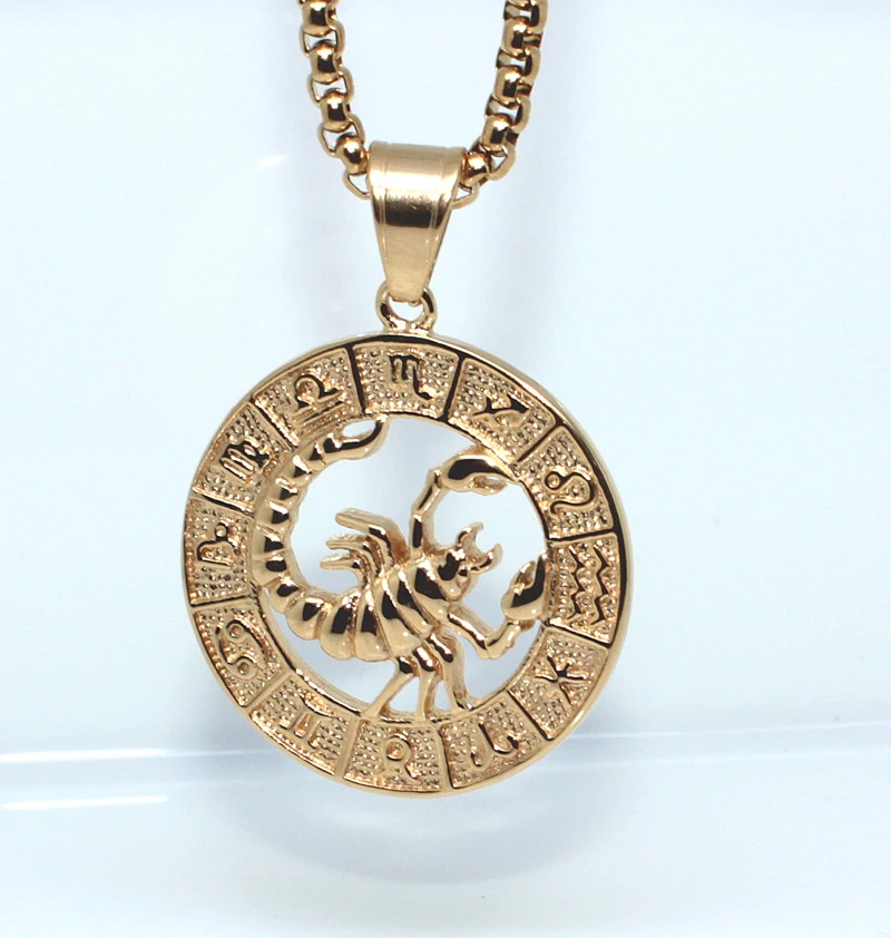 Náhrdelník z chirurgickej ocele so znamením škorpióna. Povrch náhrdelník u je pozlátený technológiou PVD. Ako všetky oceľové šperky má aj tento náhrdelník všetky vlastnosti, pre ktoré sú šperky z chirurgickej ocele stále obľúbené. K týmto vlastnostiam patrí predovšetkým odolnosť, nevyvolávanie alergických reakcií, farebná stálosť a priaznivá cena pri porovnaní so šperkami z drahých kovov.