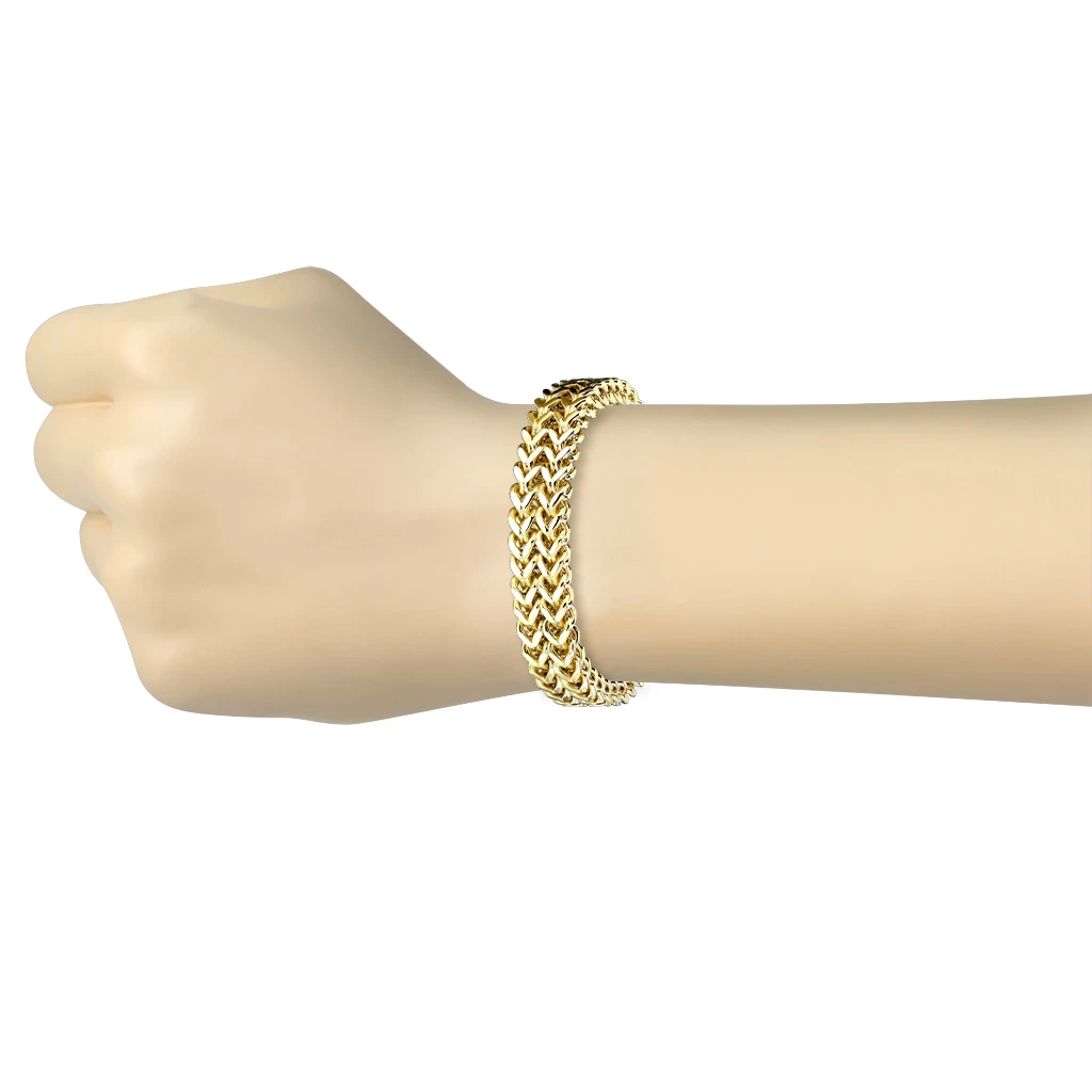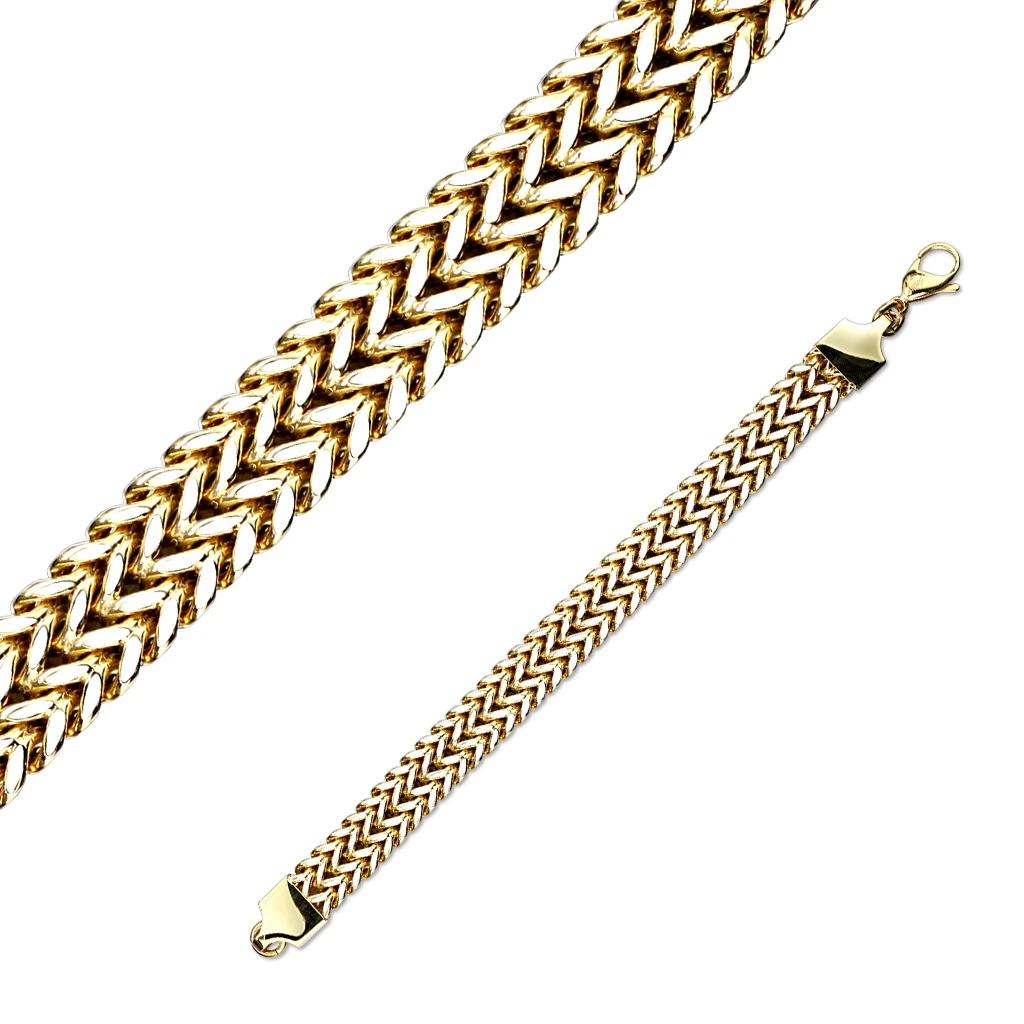 Dámsky náramok na ruku z chirurgickej ocele. Povrch náramku je leštený pozlátený technológiou PVD. Krásny dvojradový náramok pre ženy široký 8mm. Zapínanie náramku je karabínové.