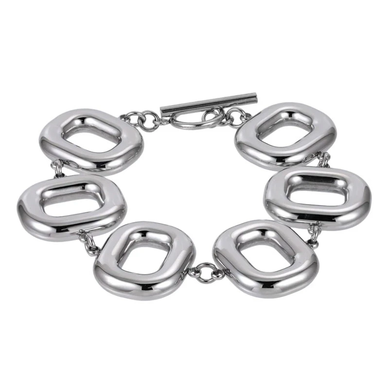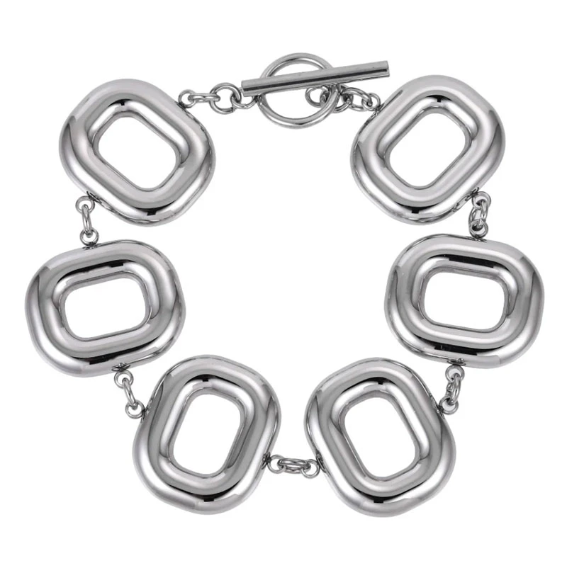 Dámsky náramok z chirurgickej ocele s lešteným povrchom. Elegantný nadčasový náramok, ktorý vďaka kvalitnej chirurgickej oceli vydrží dlhú dobu. Náramkové zapínanie je na T system, Náramok je široký 27mm, dĺžka náramku 23cm.