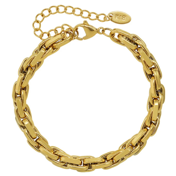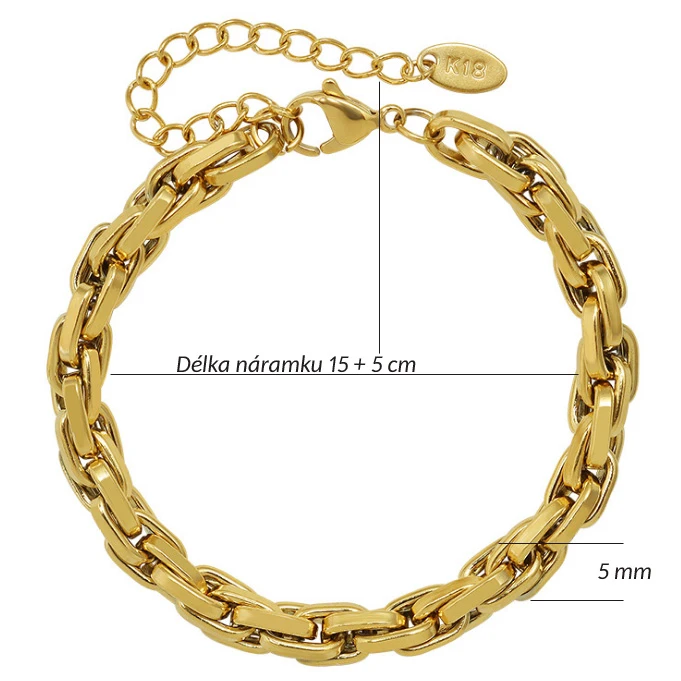 Oceľový náramok pre ženy a dievčatá. Povrch náramku je pozlátený technológiou PVD. Priemer náramku 5 mm. Dĺžku náramku je možné nastaviť v rozmedzí 15-20 cm.