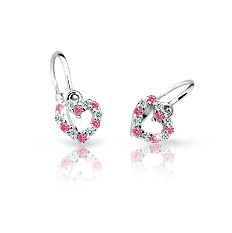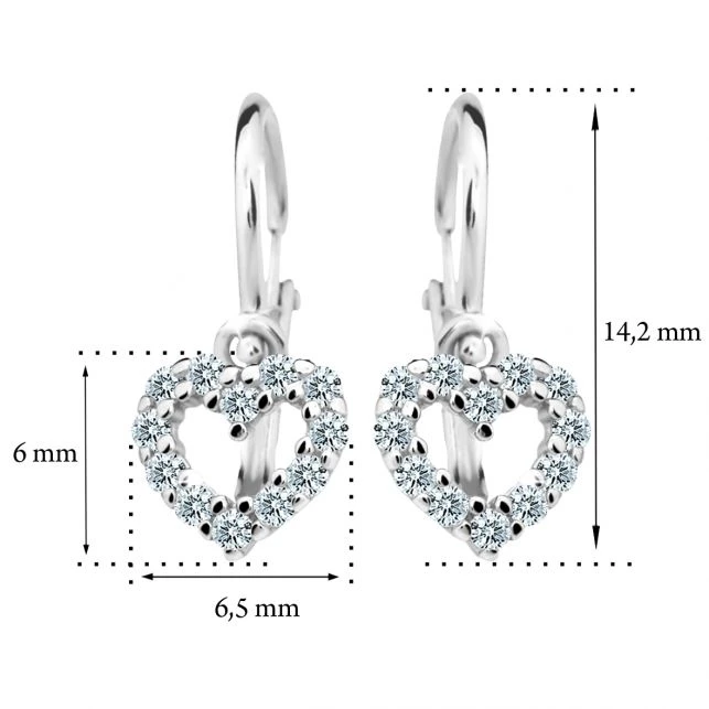 Detské náušnice z bieleho zlata rýdzosti 585/000. Povrch náušníc je leštený. Náušnice s ozdobou srdiečka. Srdiečko je zdobené kamienkami. Priemer náušníc: 14,2mm, rozmer ozdoby 6 * 6,5 mm. Náušnice majú bezpečnostné detské zapínanie. Krásne detské náušnice od českého výrobcu CUTIE JEWELLERY.