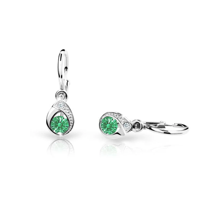 Detské náušnice zo zlata 585/000. Nádherné náušničky pre bábätká so zapínaním na detskú brizuru, ktorá deťom zabraňuje v ich jednoduchom otvorení. Luxusný vzhľad detských náušníc je podčiarknutý žiarivými kamienkami. Všetky detské šperky od Cutie Jewellery sú vyrábané Českej republike