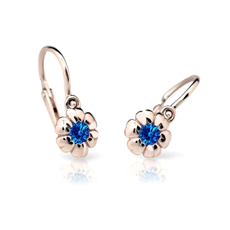 Detské náušnice z ružového zlata rýdzosti 585/000. Povrch náušníc je leštený. Náušnice s ozdobou kvetu. V strede kvetu je kamienok. Rozmery náušničiek nájdete zobrazené na podpornej fotografii. Náušnice majú bezpečnostné zapínanie na detskú brizúru. Krásne zlaté detské náušnice od českého výrobcu CUTIE JEWELLERY. Uvedená cena za 1 pár.