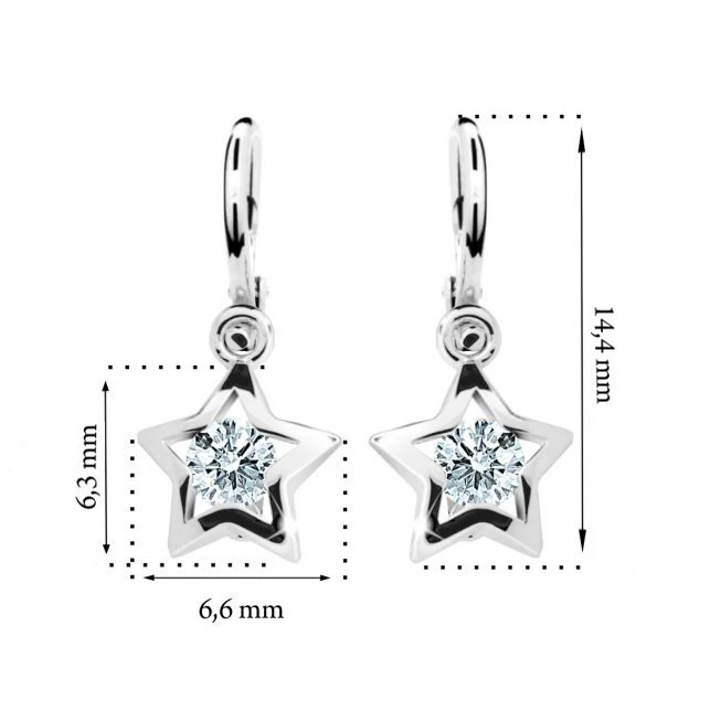 Detské náušnice hviezdičky vyrobené zo 14 karátového zlata. Náušnice sú navrhnuté a vyrobené s ohľadom na komfortné a bezpečné užívanie pre bábätká od najútlejšieho veku. Zapínanie náušničiek na detskú brizuru zamedzuje ich ľahkému otvoreniu a následnej strate detské náušničky. Hviezdička má rozmer 6,3 × 6,6 mm, celková "výška" náušničky 14,4 mm.