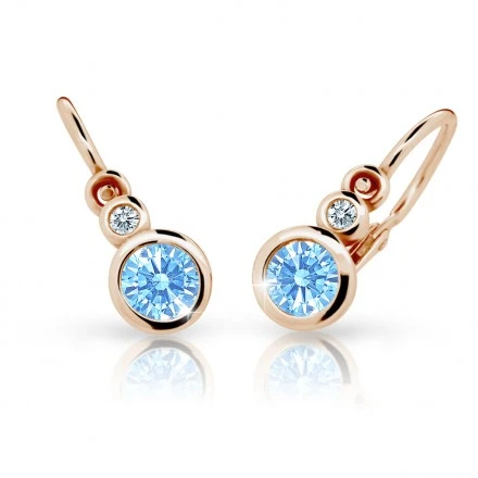 Detské náušnice vyrobené zo 14 karátového zlata. Náušnice sú navrhnuté a vyrobené s ohľadom na komfortné a bezpečné užívanie pre bábätká od najútlejšieho veku. Zapínanie náušničiek na detskú brizuru zamedzuje ich ľahkému otvoreniu a následnej strate detské náušničky. Ozdoba so zirkónmi má rozmer 7,5 × 5,0 mm, celková "výška" náušničky 14,5 mm.