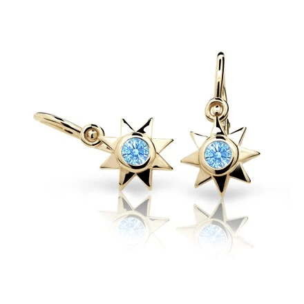 Detské náušnice ze zlata 585/000. Krásné náusničky pro děti so zapínáním na dětskou brizuru, která omezuje snadné otevření zapínání a případné ztrátě náušnice Vaší malé parádnice. Luxusní vzhled dětských náušnic je umocněný zářivými kamínky. Všechnyšperky pre deti od Cutie Jewellery jsou vyráběné České republice a dnes jsou tyto šperky známé téměř po celém světě. Tak jako všechny zlaté šperky jsou také tyto náušničky pro miminka opuncované dle puncovního zákona. K náušničkám patří originální krabička Cutie Jewellery.