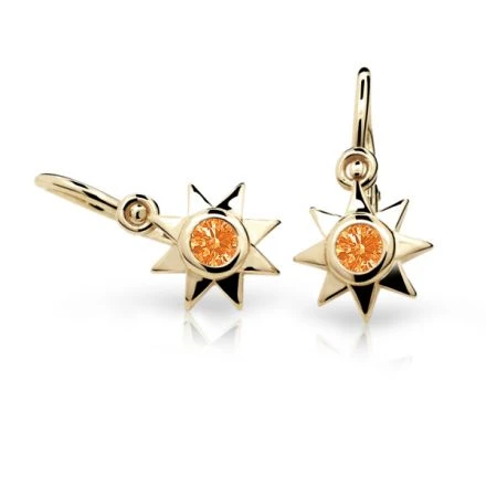 Detské náušnice ze zlata 585/000. Krásné náusničky pro děti so zapínáním na dětskou brizuru, která omezuje snadné otevření zapínání a případné ztrátě náušnice Vaší malé parádnice. Luxusní vzhled dětských náušnic je umocněný zářivými kamínky. Všechnyšperky pre deti od Cutie Jewellery jsou vyráběné České republice a dnes jsou tyto šperky známé téměř po celém světě. Tak jako všechny zlaté šperky jsou také tyto náušničky pro miminka opuncované dle puncovního zákona. K náušničkám patří originální krabička Cutie Jewellery.