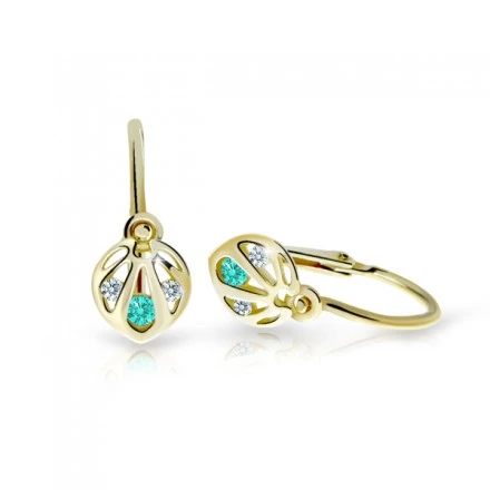 Detské náušnice vyrobené zo 14 karátového zlata. Náušnice sú navrhnuté a vyrobené s ohľadom na komfortné a bezpečné užívanie pre bábätká od najútlejšieho veku. Zapínanie náušničiek na detskú brizuru zamedzuje ich ľahkému otvoreniu a následnej strate detské náušničky. Ozdoba so zirkónmi má rozmer 6,0 × 5,5 mm, celková "výška" náušničky 13,0 mm.