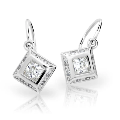 Detské visiace náušnice z bieleho zlata rýdzosti 585/000. Povrch náušníc je leštený. Náušnice s ozdobou. Rozmer náušníc 16x9mm. Náušnice majú bezpečnostné detské zapínanie. Krásne detské náušnice od českého výrobcu CUTIE JEWELLERY.