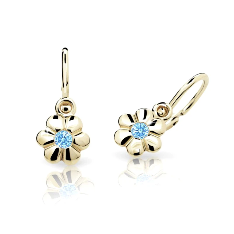 Detské náušnice zo žltého zlata rýdzosti 585/000. Krásne detské náušnice od jedinečného návrhára a výrobcu detských šperkov Cutie Jewellery. Náušničky sú samozrejme označené a opuncovány podľa puncového zákona. Všetky detské náušničky Cutie sú dodávané v originálnej darčekovej krabičke v tvare pyramídy