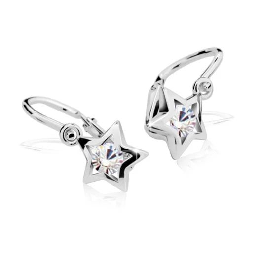 Detské náušnice z bieleho zlata rýdzosti 585/000. Povrch náušníc je leštený. Náušnice je zdobená hviezdičkou s kamienkom. Priemer náušníc: 14mm, rozmer ozdoby 7x2mm. Náušnice majú bezpečnostné detské zapínanie. Krásne detské náušnice od českého výrobcu Cutie Jewellery.