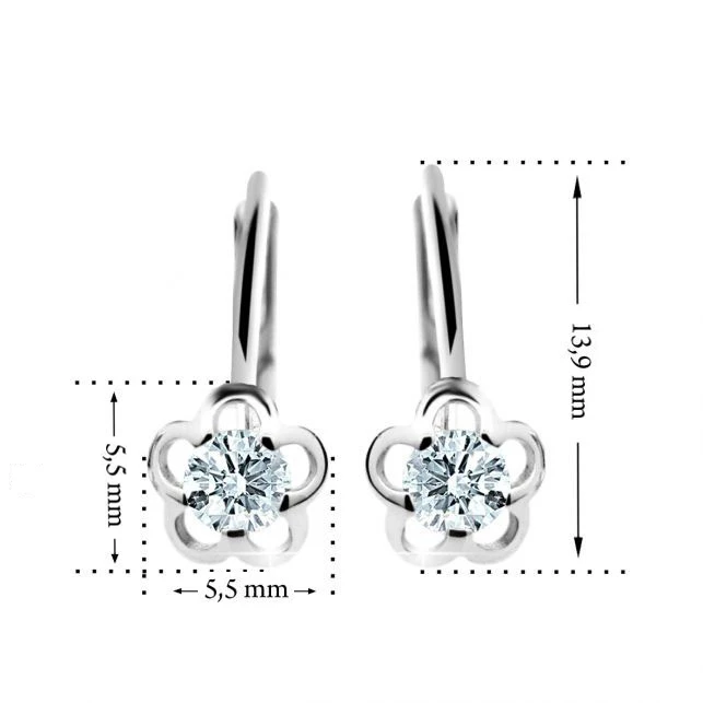 Dievčenské náušnice kvietky vyrobené zo 14 karátového zlata. Náušnice sú navrhnuté a vyrobené pre väčšie dievčatka. Zapínanie je na praktickú klapku. Kytička má rozmer 5,5 × 5,5 mm, celková "výška" náušničky 13,9 mm.