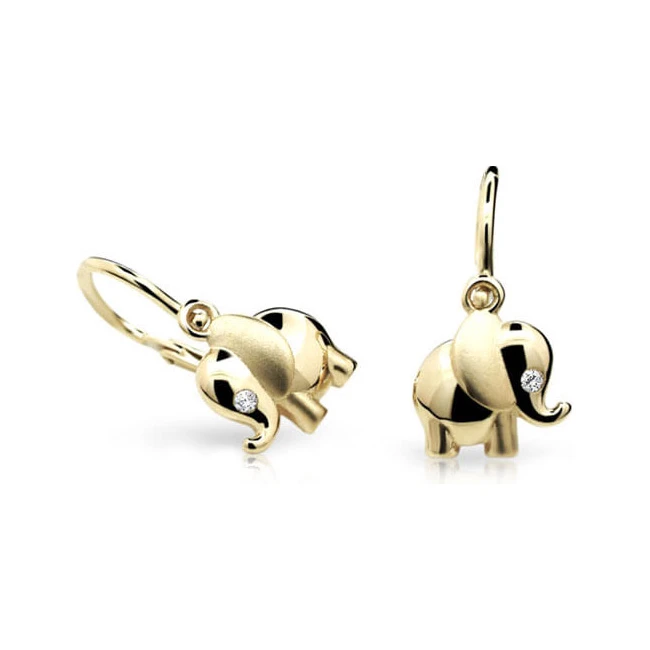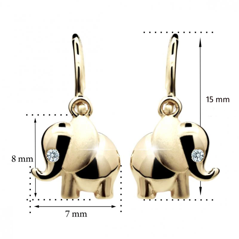 Detské náušnice zo žltého zlata 585/1000. Náušničky majú zapínanie na detskú brizúru. Toto zapínanie je skonštruované práve pre detské náušnice a zamedzuje jeho nechcenému roztvoreniu a následnej strate náušničky. Rozmery náušničiek nájdete zobrazené na podpornej fotografii. Náušničky sú ozdobené žiarivými zirkónmi.