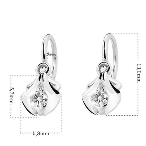 Detské náušnice vyrobené zo zlata 585/1000. Náušnice sú navrhnuté a vyrobené s ohľadom na komfortné a bezpečné užívanie pre bábätká od najútlejšieho veku. Zapínanie náušničiek na detskú brizuru zamedzuje ich ľahkému otvoreniu a následnej strate detské náušničky. Ozdoba so zirkónom má rozmer 5,7 × 5,8 mm, celková "výška" náušničky 13 mm.