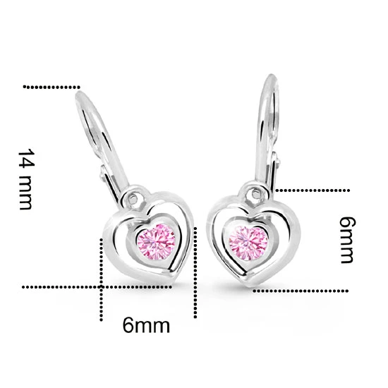 Zlaté detské náušnice z bieleho zlata rýdzosti 585/000. Detské náušničky ozdobené žiarivým kamienkom. Náušnice pre bábätko so zapínaním na bezpečnosťou detskú brizuru. Rozmer srdiečka 6x6 mm, celková výška náušničiek 14 mm.