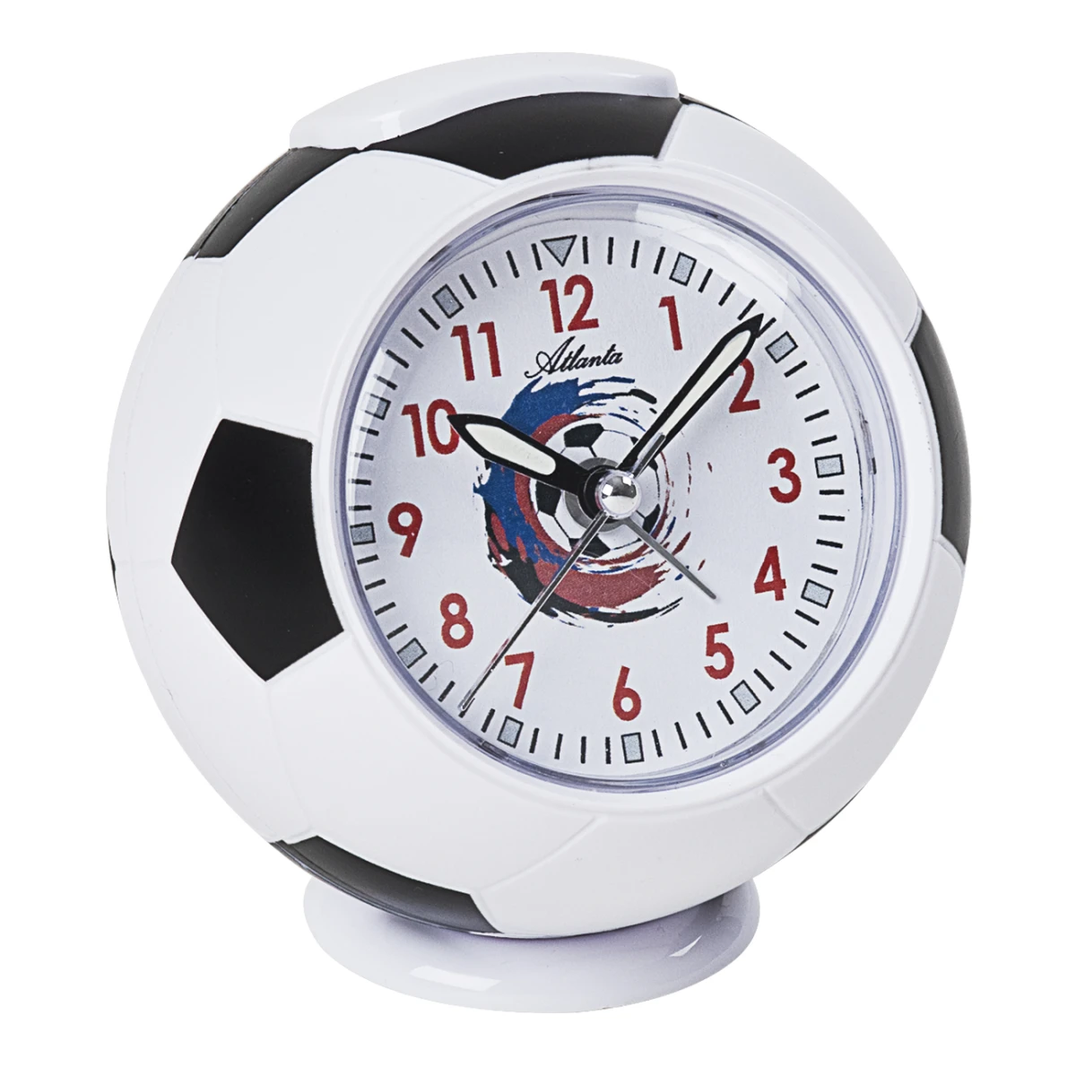 Detský budík pre malých futbalistov. Budík má hodinovú, minútovú a sekundovú rúčku. Stlačením tlačidla na vrchu budíka dôjde k osvetleniu ciferníka. Budík má funkciu alarmu. Spustený alarm pípa. Priemer ciferníka 63 mm. Výška budíka 100 mm, šírka 90 mm, hĺbka 80mm. Pohon budíka je batériový na batériu typu AA. Batéria je súčasťou balenia.