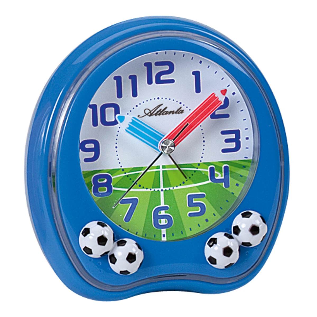 Detský budík pre malých futbalistov. Budík má hodinovú, minútovú a sekundovú rúčku. Stlačením tlačidla na vrchu budíka dôjde k osvetleniu ciferníka. Budík má funkciu alarmu. Spustený alarm hrá melódiu. Priemer ciferníka 72 mm. Výška budíka 100 mm, šírka 100 mm, hĺbka 55 mm. Pohon budíka je batériový na 2 batérie typu AA. Batérie sú súčasťou balenia.