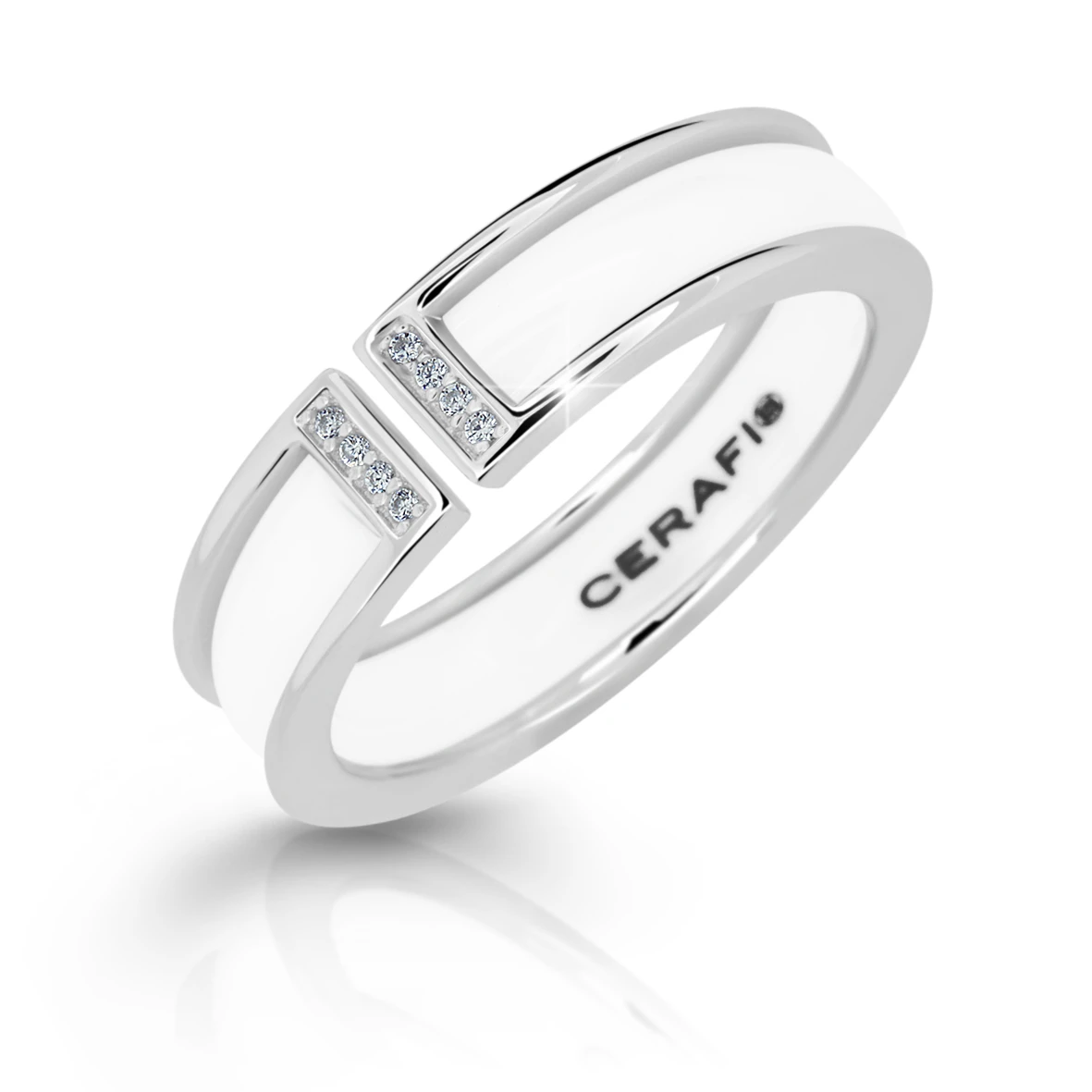 Keramický prsteň so zirkónmi Cerafi Magnete Bianco 906