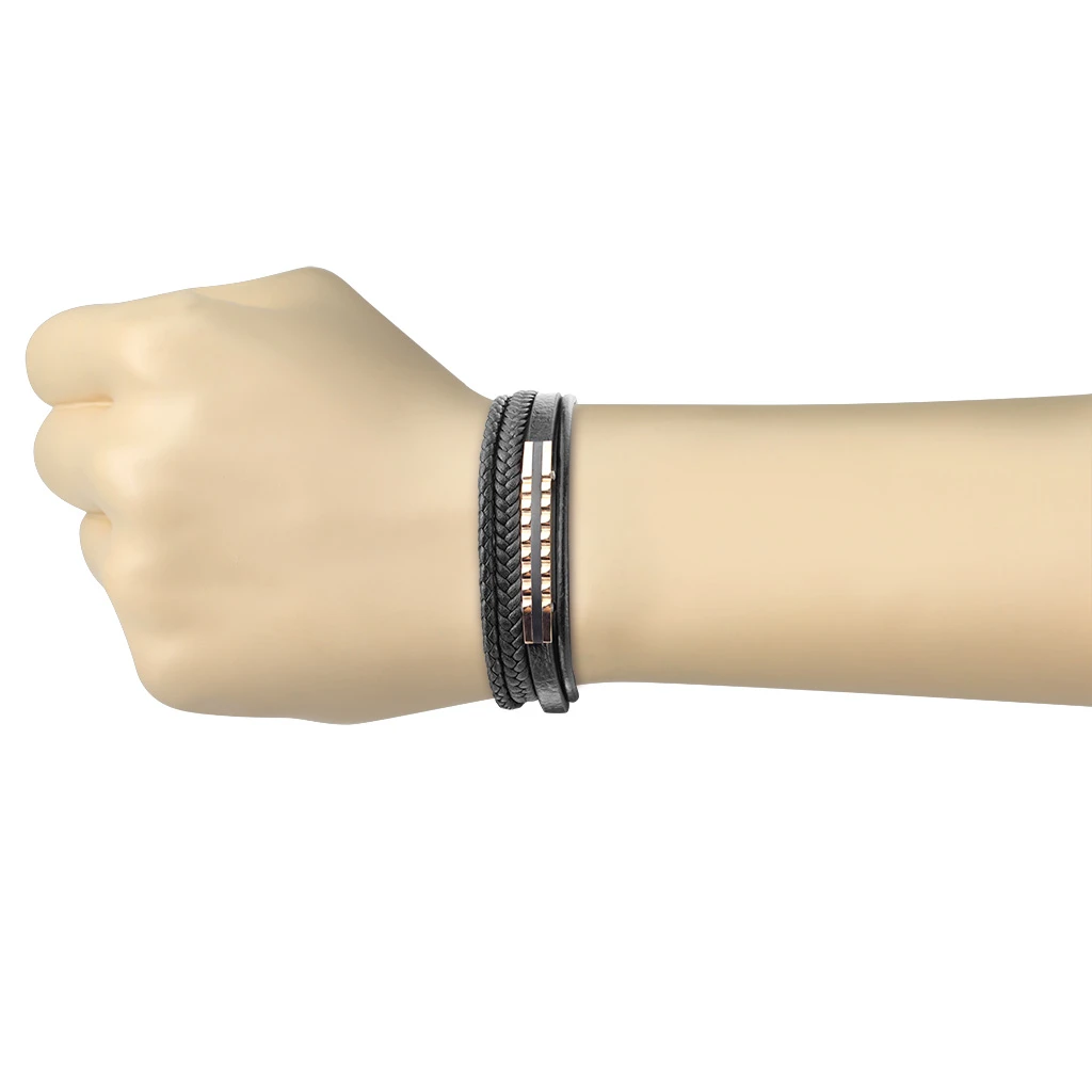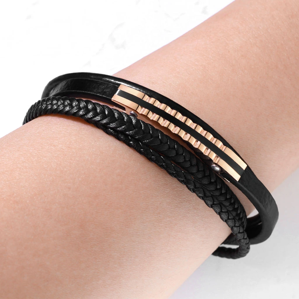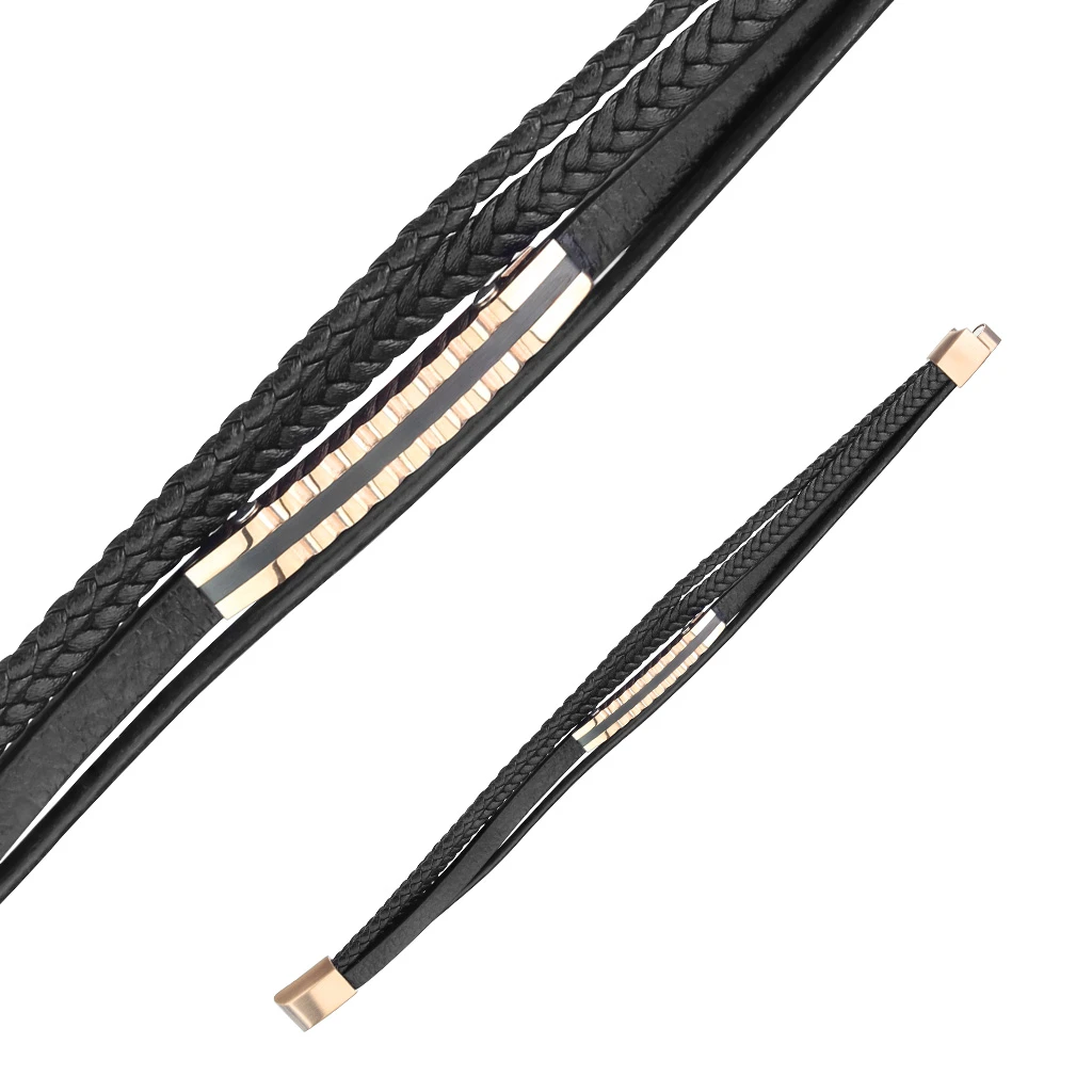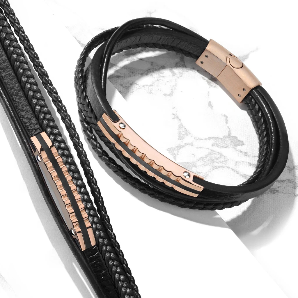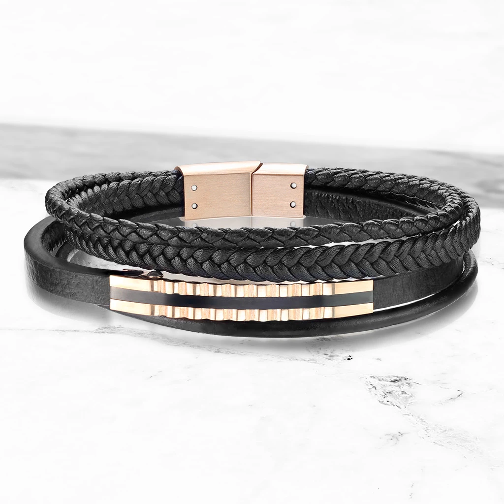 Luxusný pánsky náramok, ktorý spája pravú kožu a chirurgickú oceľ v elegantný celok.