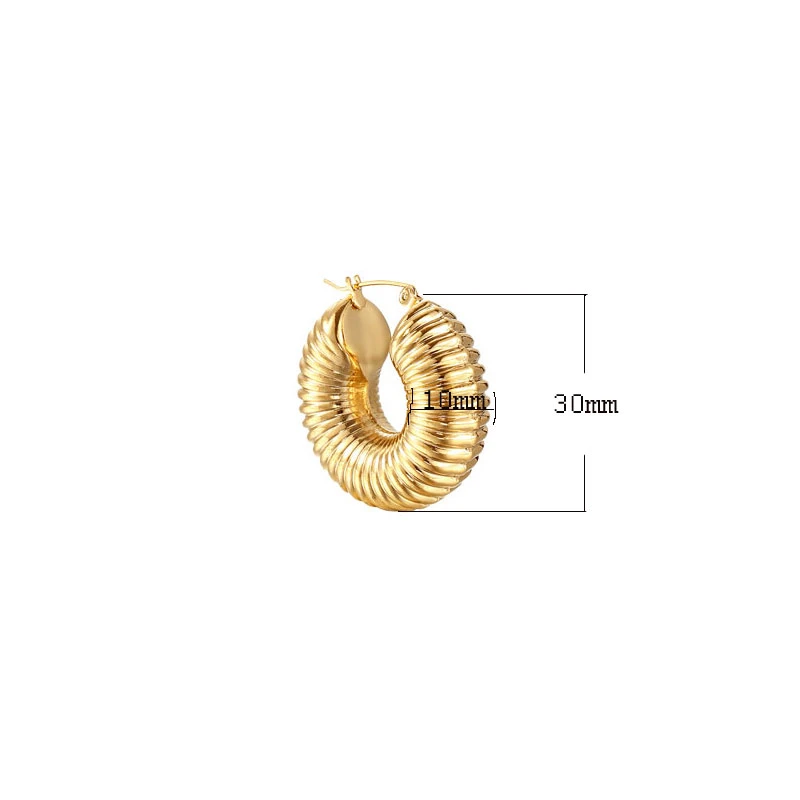 Kruhové náušnice z chirurgickej ocele s lešteným pozláteným povrchom. Náušnice majú zapínanie francúzsky zámok. Vonkajší priemer náušníc 30m, hrúbka 10mm.