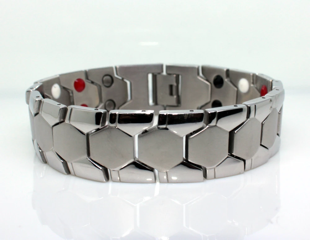 Magnetický náramok na ruku z chirurgickej ocele. Ako všetky šperky zhotovené z materiálu chirurgická oceľ, je aj tento náramok odolný proti poškodeniu, nevyvoláva magnetické reakcie, neoxiduje, chirurgická oceľ nemení farbu. Vďaka týmto vlastnostiam a prijateľnej cene sa oceľové šperky tešia stále značne vysokej popularite v stále sa rozširujúcich radoch spokojných užívateľov.
