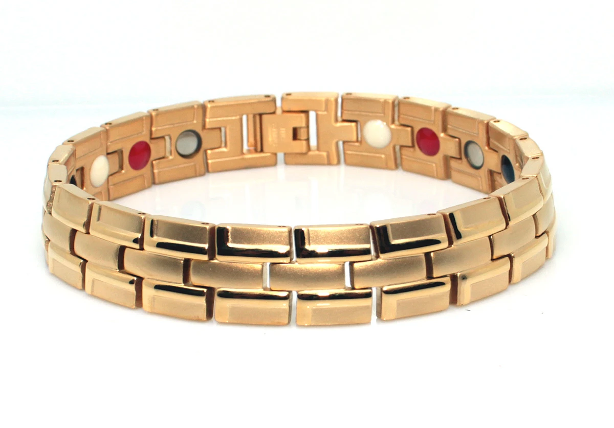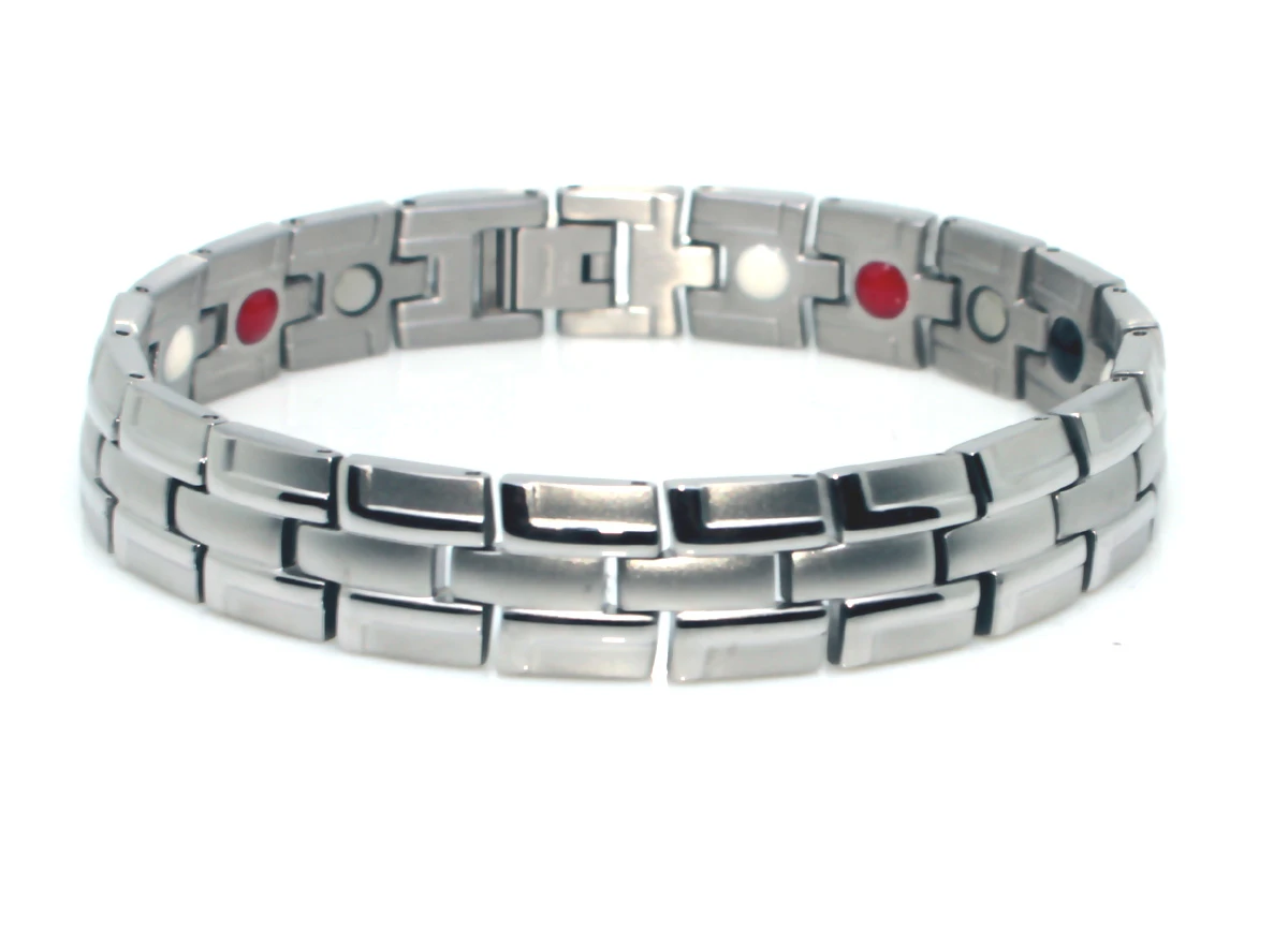 Magnetický náramok na ruku z chirurgickej ocele. Ako všetky šperky zhotovené z materiálu chirurgická oceľ, je aj tento náramok odolný proti poškodeniu, nevyvoláva magnetické reakcie, neoxiduje, chirurgická oceľ nemení farbu. Vďaka týmto vlastnostiam a prijateľnej cene sa oceľové šperky tešia stále značne vysokej popularite v stále sa rozširujúcich radoch spokojných užívateľov.