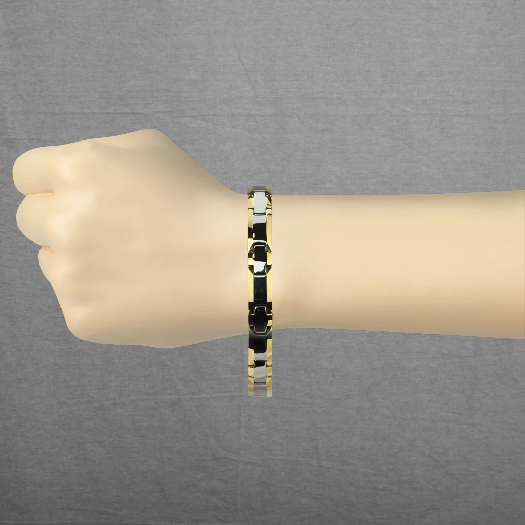 Magnetický náramok z volfrámu pre ženy. Krásny a elegantný náramok zvýraznený pozlátenými krajmi. Volfrám sa radí medzi kovy s vysokou hustotou a tvrdosťou, preto náramok odoláva mechanickému poškodeniu. Volfrámové magnetické náramky možno "stoja trochu bokom" pri porovnaní s magnetickými náramkami z chirurgickej ocele, ale úplne neprávom. Skúste magnetický náramok z volfrámu a sami uvidíte.