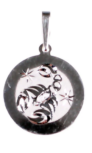 Mesačný znamení zo striebra 925/000. Priemer prívesku 16mm. Motív znamenie je vyrytý. Povrch je porhodiovaný. Závesné očko je vhodné pre strieborný retiazka s priemerom do 1,8 mm.
