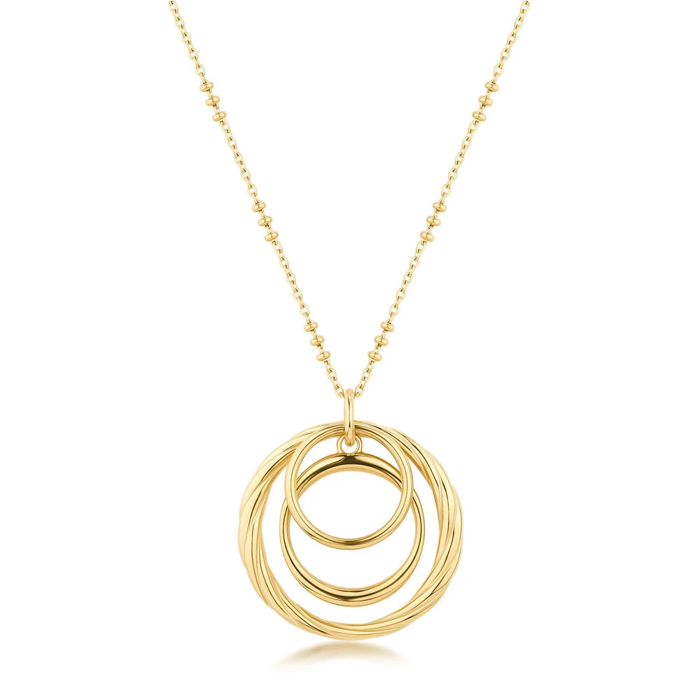 Elegantný náhrdelník Brosway z kolekcie Amy s okrúhlym prepleteným príveskom je vyrobený z chirurgickej ocele a je pozlátený technológiou PVD. Šperky vyrobené z chirurgickej ocele sú odolné proti poškriabaniu, nemenia farbu, neoxidujú, nevyvolávajú alergické reakcie ani nereagujú na pot a prach. Náhrdelník je dlhý 75 cm.