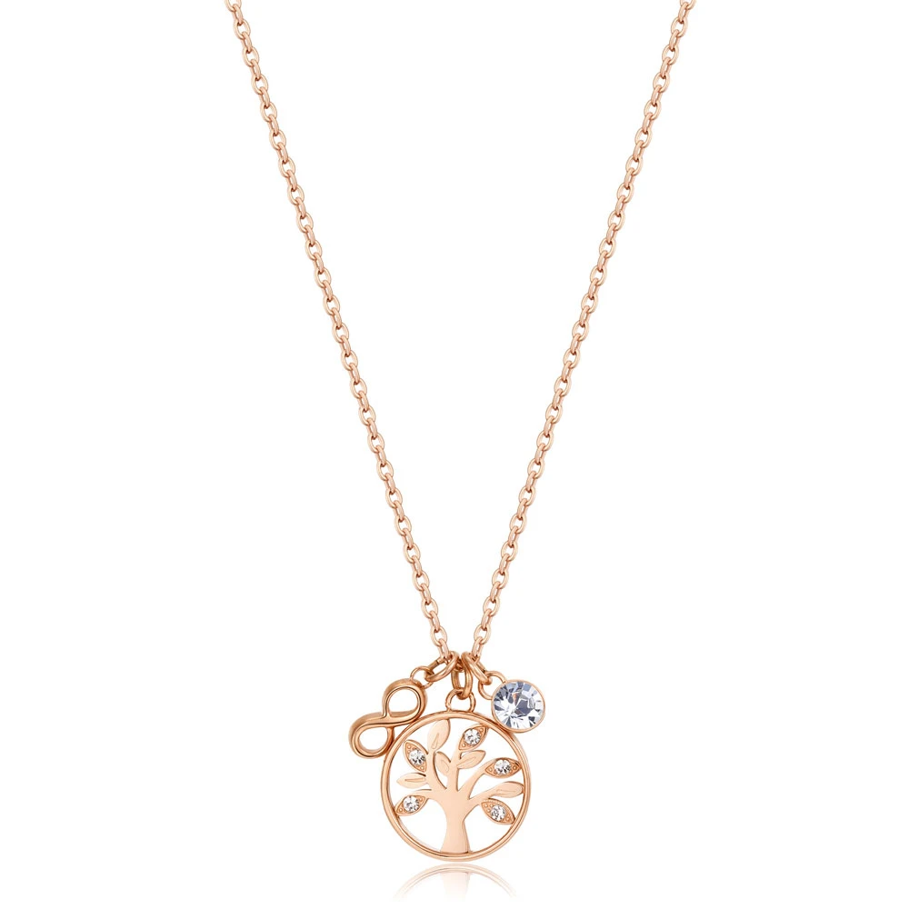 Dámsky náhrdelník z chirurgickej ocele 316L z kolekcie Chakra. Náhrdelník s príveskom stromu života. Povrch náhrdelníka je pozlátený technológiou PVD. Náhrdelník je zdobený bielymi kryštálmi. Dĺžka náhrdelníka 44cm.