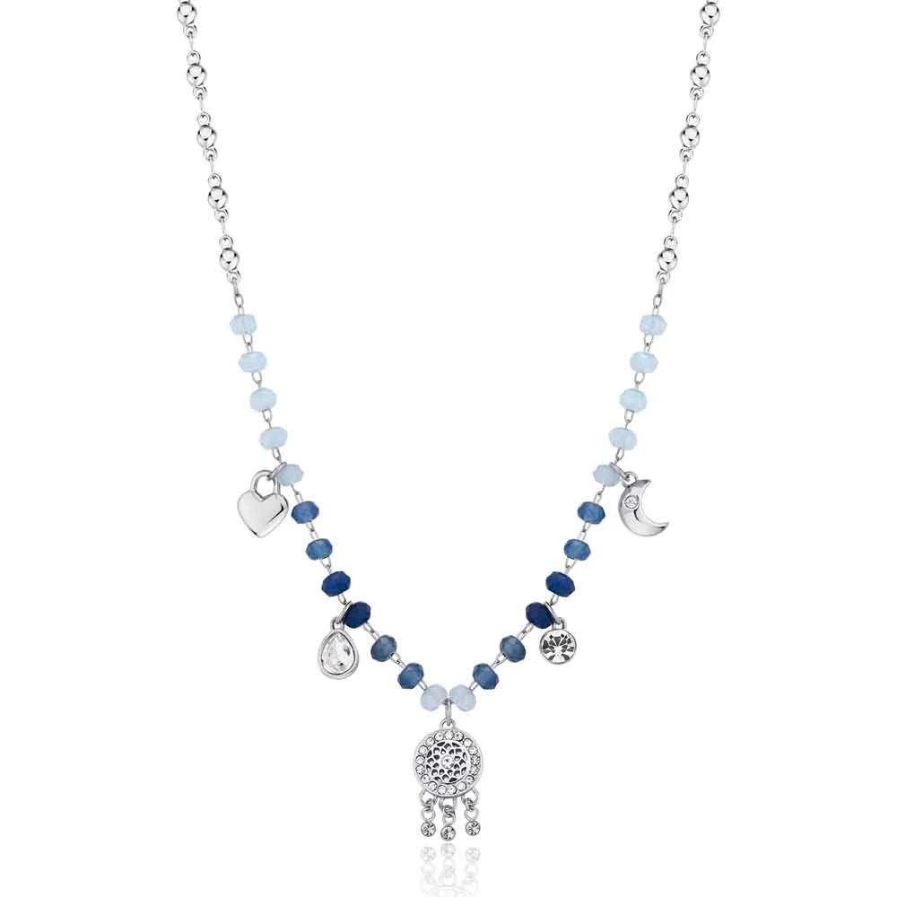Dámský náhrdelník z kolekce Chakra vyrobený z chirurgické oceli 316L. Povrch náhrdelníku je leštěný. Náhrdelník je ozdobený minerálními korálky z chalcedonu a zářivými krystaly. Délka náhrdelníku 48cm.