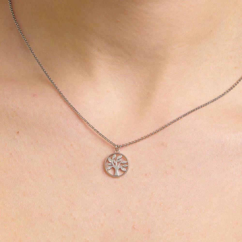 Dámsky náhrdelník z chirurgickej ocele z kolekcie CHAKRA s príveskom stromu života s kryštálmi. Šperky vyrobené z chirurgickej ocele sú odolné proti poškriabaniu, nemenia farbu, neoxidujú, nevyvolávajú alergické reakcie ani nereagujú na pot a prach. Dĺžka náhrdelníka 48 cm.