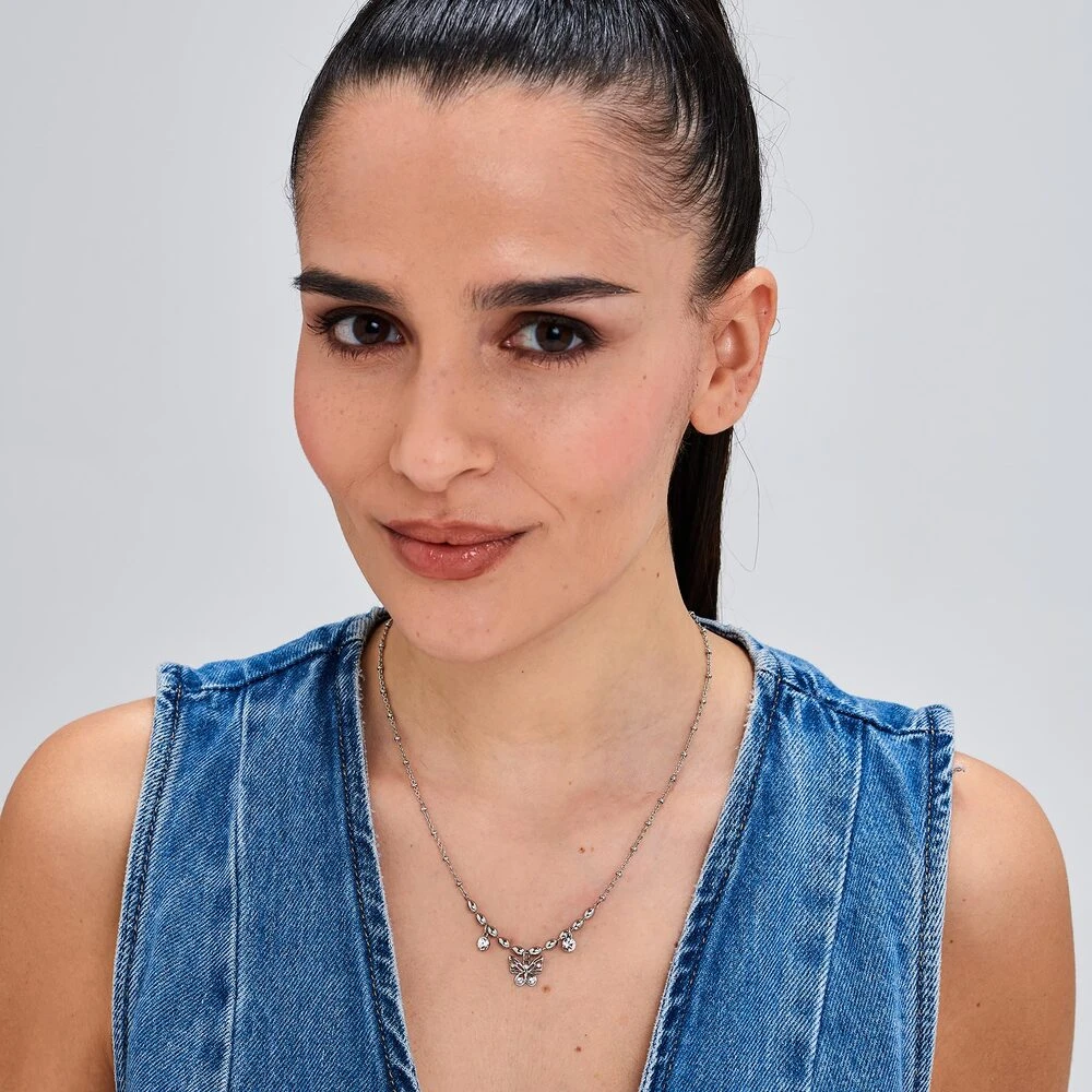 Tento jedinečný dámsky náhrdelník je vyrobený z kvalitnej chirurgickej ocele, ktorá je hypoalergénna, odolná voči poškriabaniu a nestráca svoj lesk. Jeho dominantou je ozdoba motýlika osadená kryštálmi. Minimalistický a čistý dizajn sa hodí ako na denné nosenie, tak na slávnostné príležitosti. Všetky šperky Brosway sú dodávané v originálnej krabičke s logom.