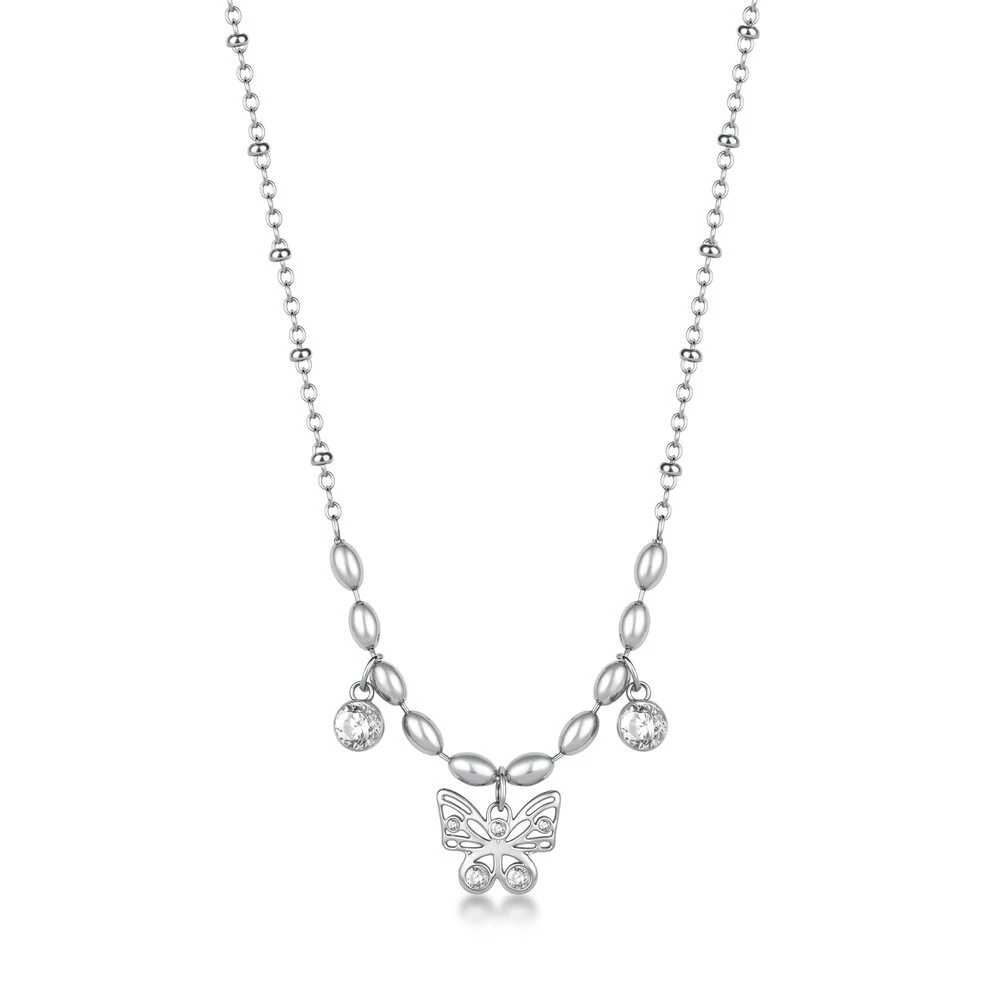 Elegantný náhrdelník z chirurgickej ocele motýľ. Náhrdelník je ozdobený žiarivými kryštálmi. Zapínanie náhrdelníka je karabínové, dĺžka náhrdelníka 48cm.