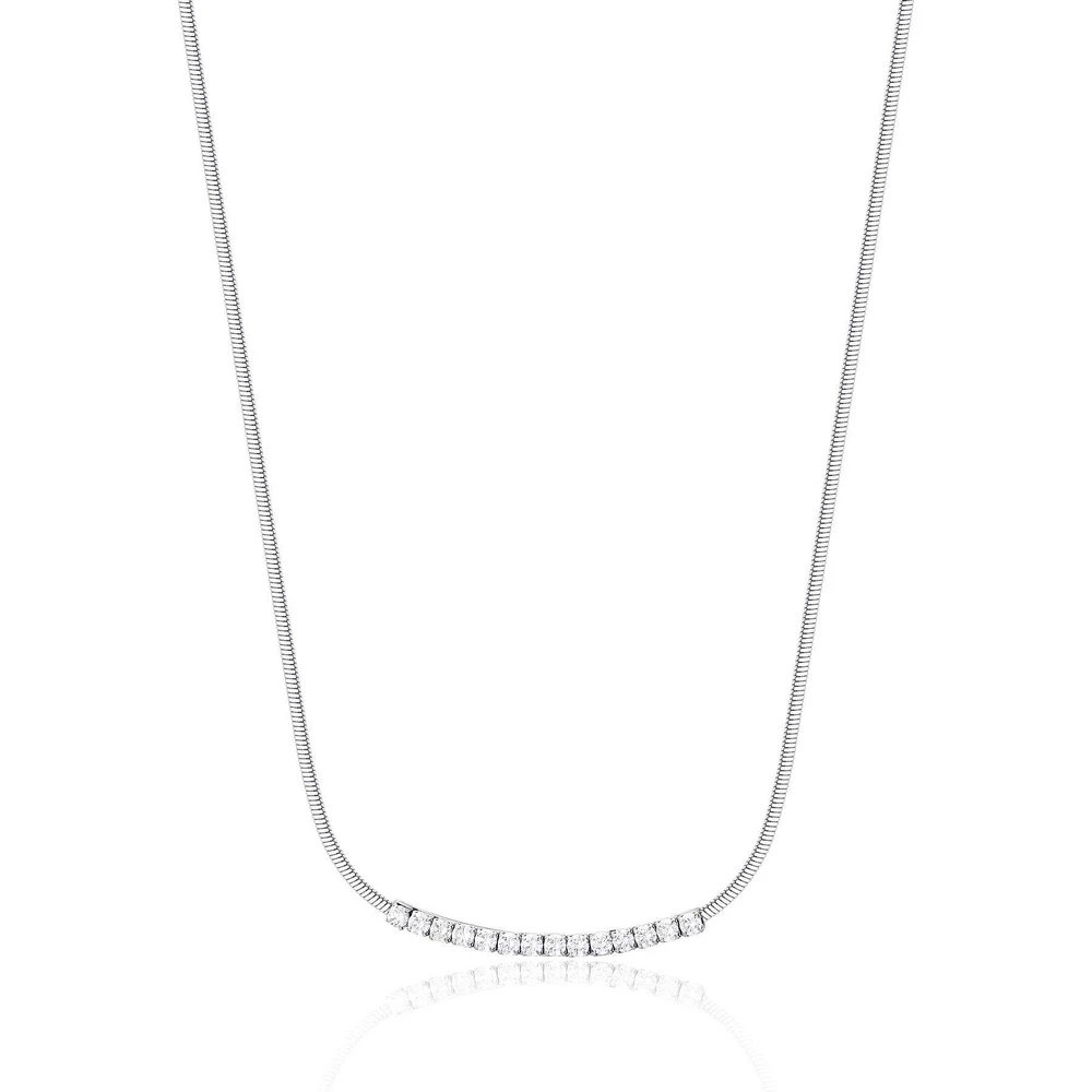 Dámsky oceľový náhrdelník z kolekcie Desideri ozdobený kryštály. Šperky vyrobené z chirurgickej ocele sú odolné proti poškriabaniu, nemenia farbu, neoxidujú, nevyvolávajú alergické reakcie ani nereagujú na pot a prach. Dĺžka náhrdelníka 43cm.