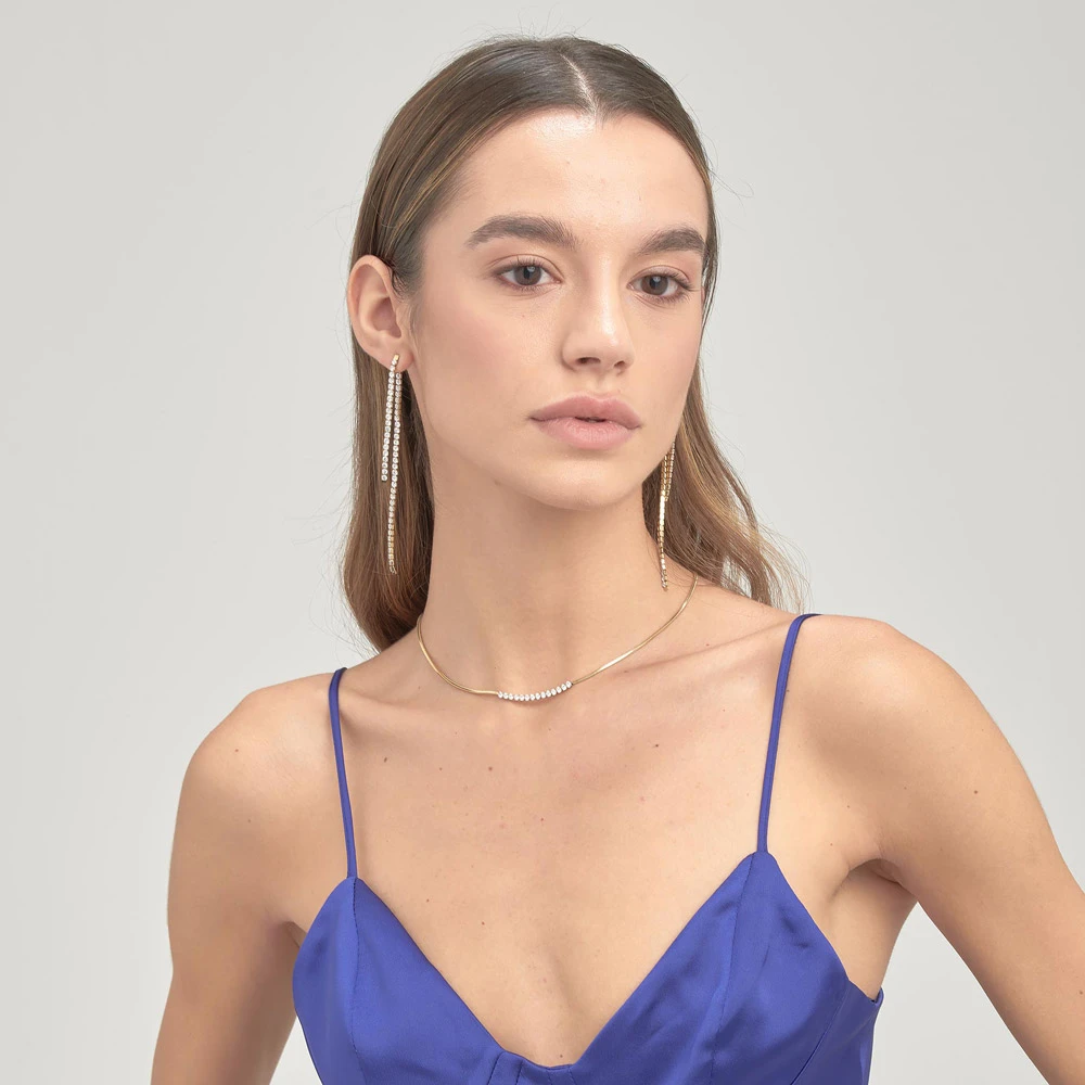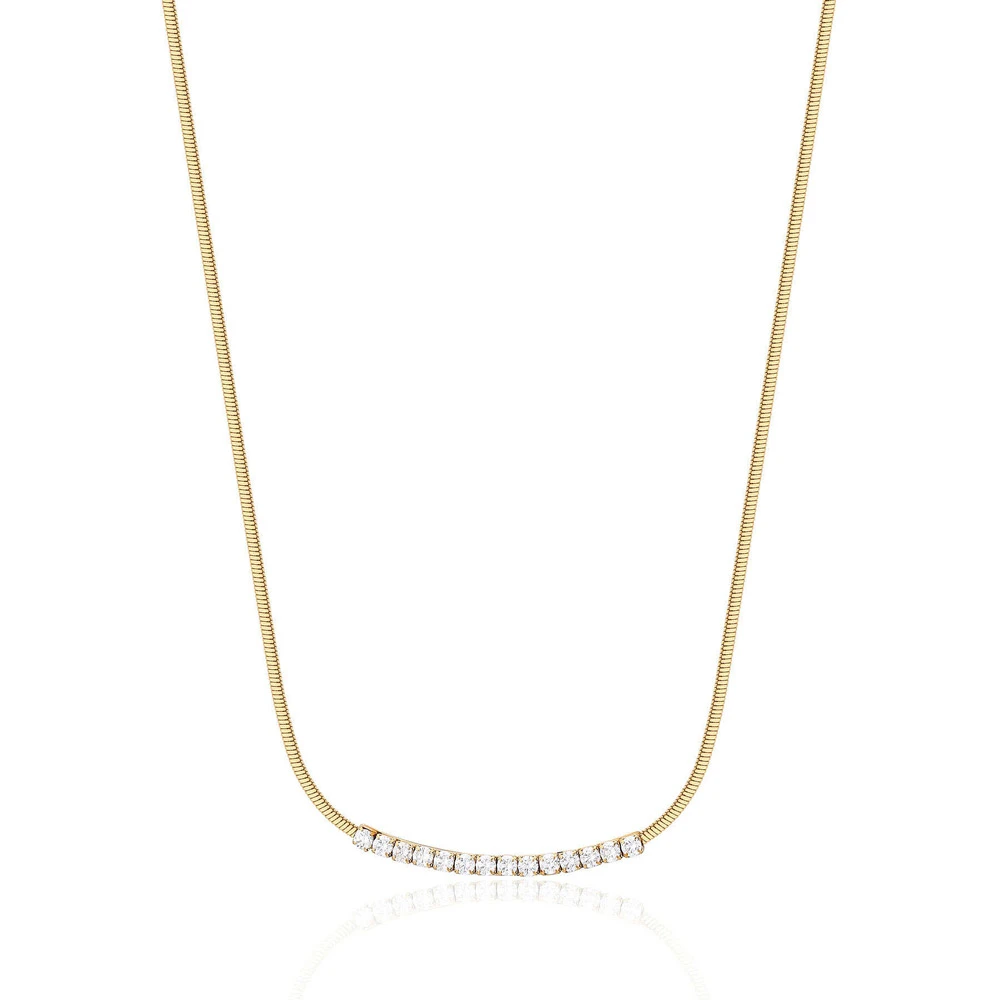 Dámsky náhrdelník Brosway z kolekcie Desideri. Povrch náhrdelníka je z chirurgickej ocele a je pozlátený technológiou PVD. Náhrdelník je zdobený žiarivými kryštálmi. Dĺžka náhrdelníka 43cm.