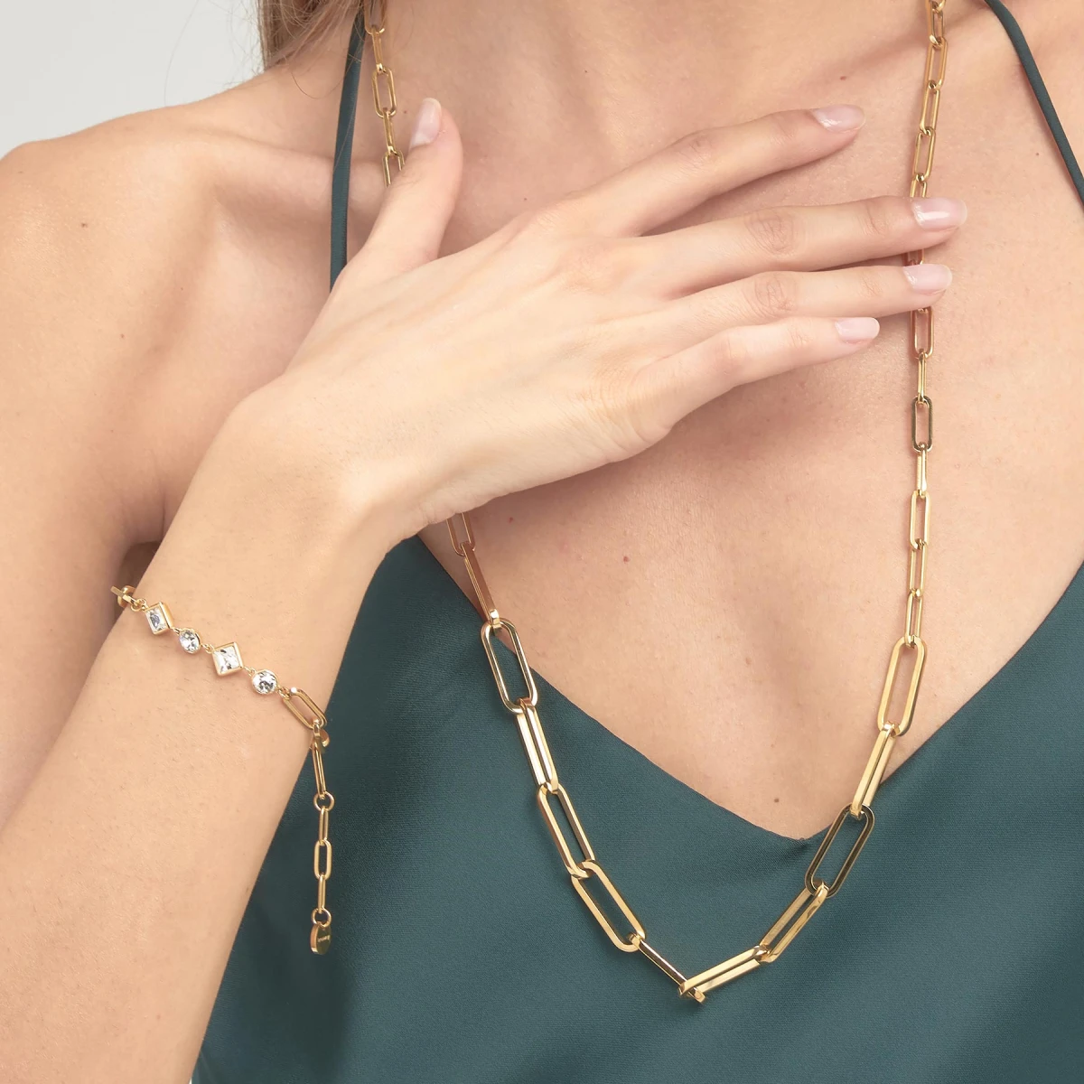 Dlhý dámsky náhrdelník z kolekcie EMPHASIS. Náhrdelník je zhotovený z ušľachtilej ocele s označením 316l. Povrch náhrdelníka je leštený pozlátený technológiou PVD. Náhrdelník je dlhý 80cm.