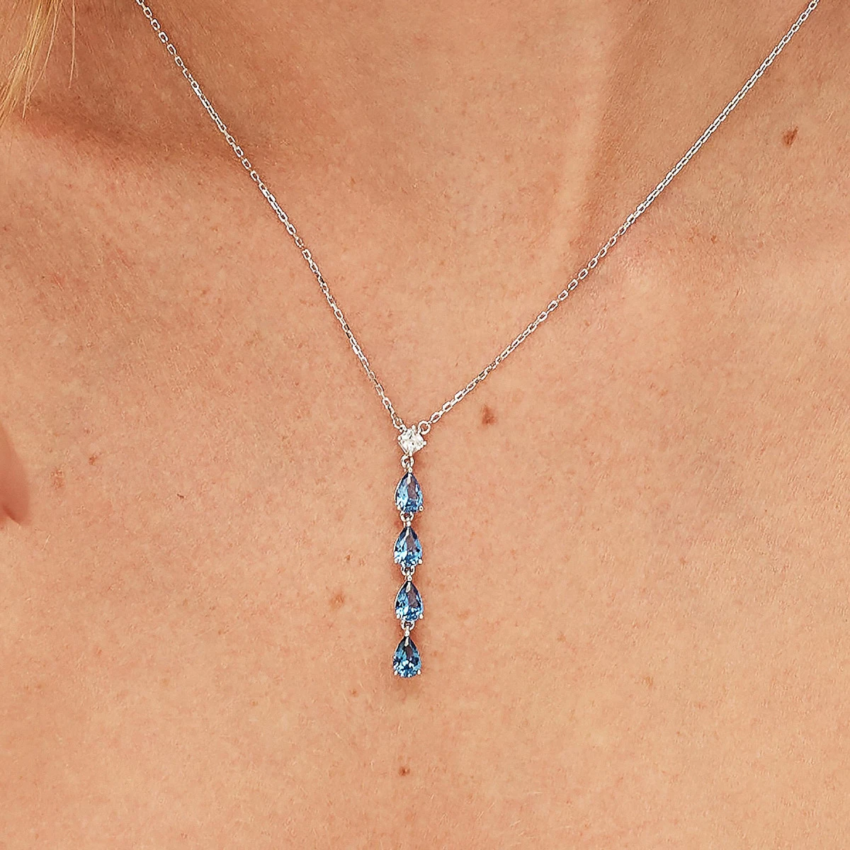 Strieborný náhrdelník s kamienkami. Náhrdelník je vyrobený zo striebra 925/1000 a je osadený brilantnými zirkónmi. Povrch náhrdelníka je navyše porhodiovaný čo mu dodáva žiarivý luxusný vzhľad, potláča prirodzenú oxidáciu striebra, chráni povrch náhrdelníka pred poškriabaním a udržuje. Náhrdelník je dlhý 45cm.
