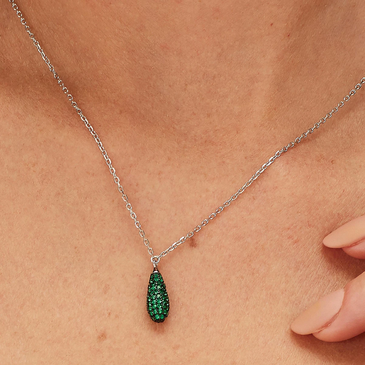 Strieborný náhrdelník s kamienkami. Náhrdelník je vyrobený zo striebra 925/1000 a je osadený brilantnými zirkónmi. Povrch náhrdelníka je navyše porhodiovaný čo mu dodáva žiarivý luxusný vzhľad, potláča prirodzenú oxidáciu striebra, chráni povrch náhrdelníka pred poškriabaním a udržuje jeho dlhodobý bezchybný vzhľad. Náhrdelník je dlhý 44cm.