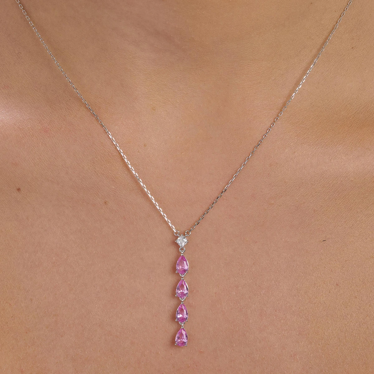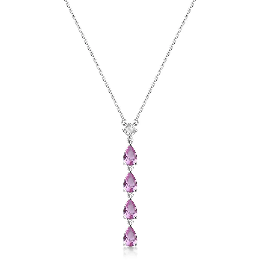 Strieborný náhrdelník s kamienkami. Náhrdelník je vyrobený zo striebra 925/1000 a je osadený brilantnými zirkónmi. Povrch náhrdelníka je navyše porhodiovaný čo mu dodáva žiarivý luxusný vzhľad, potláča prirodzenú oxidáciu striebra, chráni povrch náhrdelníka pred poškriabaním a udržuje jeho dlhodobý bezchybný vzhľad. Náhrdelník je dlhý 45cm.