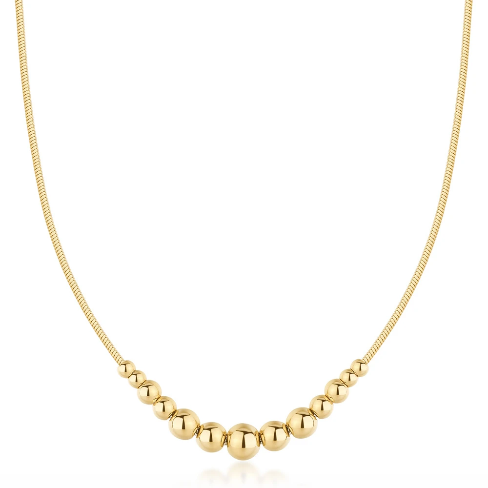 Elegantný náhrdelník Brosway z kolekcie Perfect s zdobením guličiek je vyrobený z chirurgickej ocele a je pozlátený technológiou PVD. Šperky vyrobené z chirurgickej ocele sú odolné proti poškriabaniu, nemenia farbu, neoxidujú, nevyvolávajú alergické reakcie ani nereagujú na pot a prach. Náhrdelník je dlhý 46 cm.