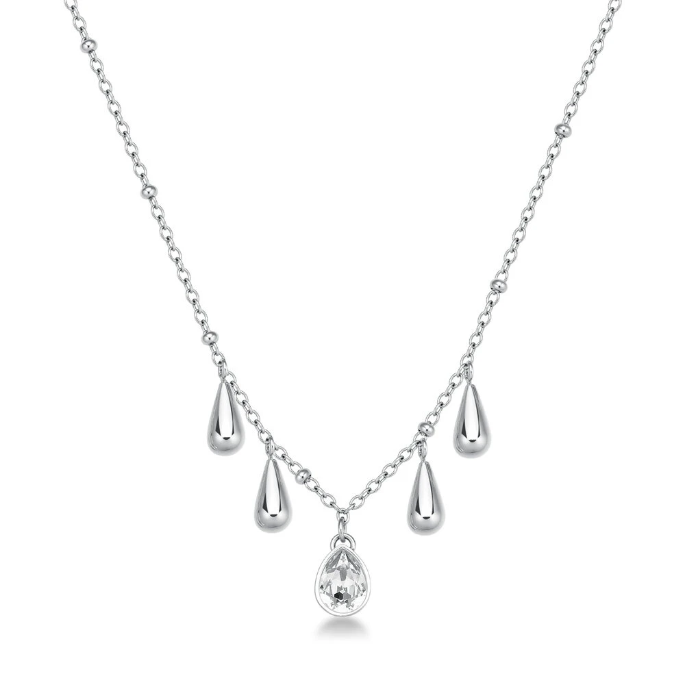Náhrdelník Brosway z kolekcie Perfect s príveskami v tvare kvapky a kryštálom je vyrobený z chirurgickej ocele. Šperky vyrobené z chirurgickej ocele sú odolné proti poškriabaniu, nemenia farbu, neoxidujú, nevyvolávajú alergické reakcie ani nereagujú na pot a prach. Náhrdelník je dlhý 45 cm.