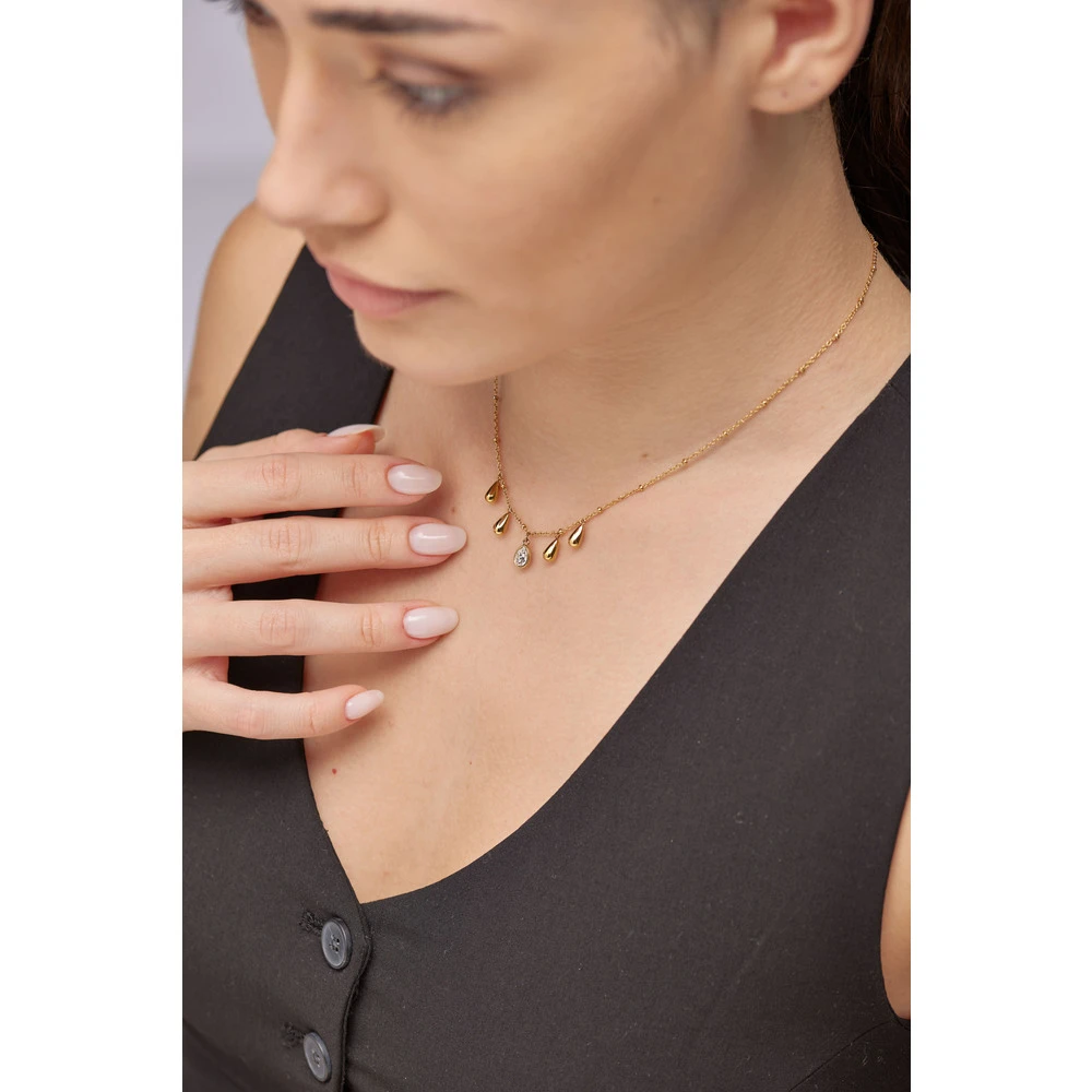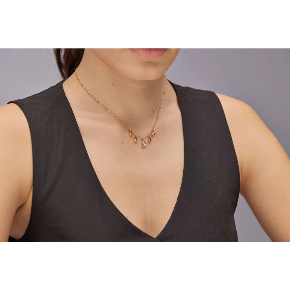 Náhrdelník Brosway z kolekcie Perfect s príveskami v tvare kvapky a kryštálom je vyrobený z chirurgickej ocele a je pozlátený technológiou PVD. Šperky vyrobené z chirurgickej ocele sú odolné proti poškriabaniu, nemenia farbu, neoxidujú, nevyvolávajú alergické reakcie ani nereagujú na pot a prach. Náhrdelník je dlhý 45 cm.