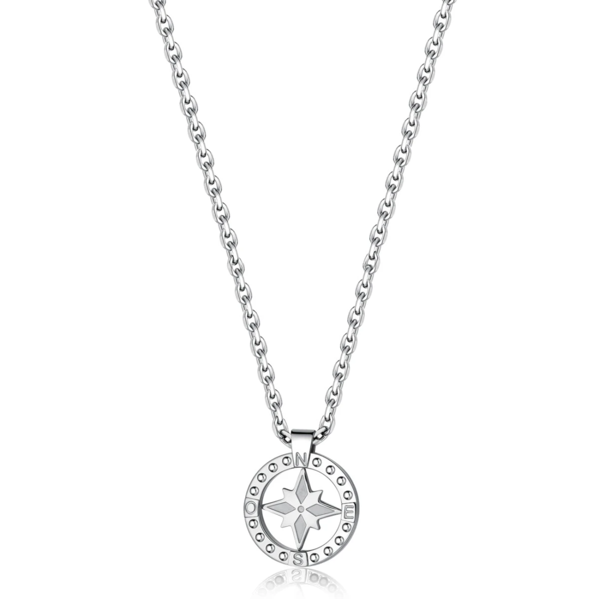 Náhrdelník z chirurgickej ocele pre mužov BrosWay. Pánsky oceľový náhrdelník ozdobený príveskom veternej ružice osadené kamienkami. Retiazka náhrdelníka so zapínaním na karabínu je dlhý 48,5 cm.