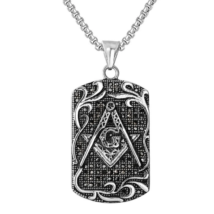 Prívesok a retiazka z chirurgickej ocele. Povrch prívesku je plastický so symbolom Slobodných slobodomurárov. Oceľová retiazka so zapínaním na karabínu je dlhá 60cm, priemer retiazky 2,8mm.