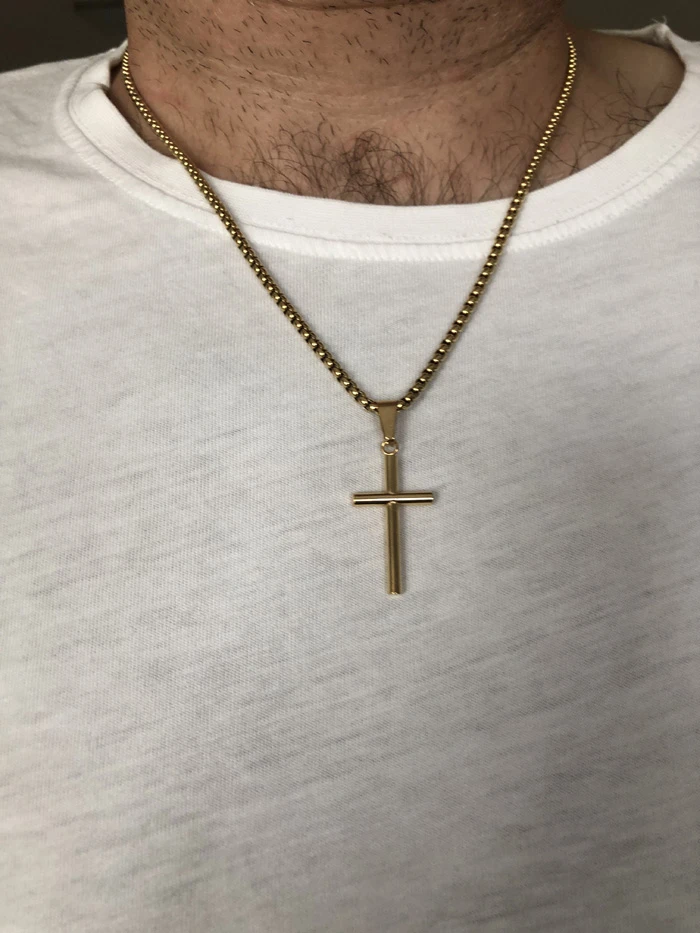Náhrdelník pre ženy a dievčatá s krížikom. Povrch krížika a retiazky je pozlátený technológiou IP. Rozmer krížika 33x17mm. Retiazka je široký 2,8mm. Dĺžka náhrdelníka 55cm.