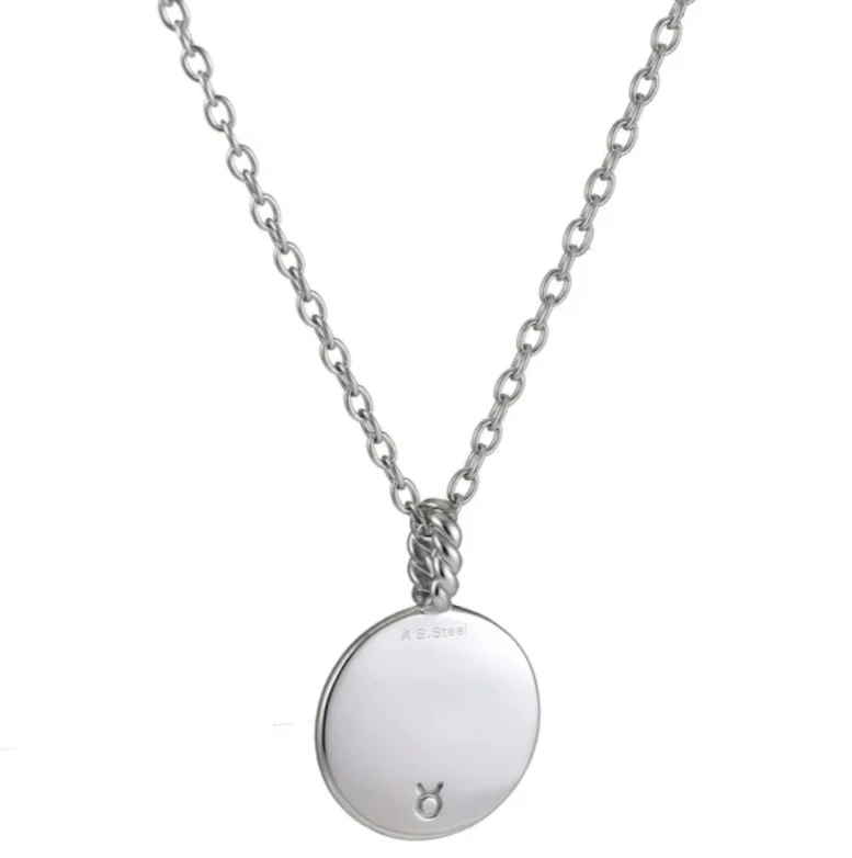Náhrdelník z chirurgickej ocele so znamením Býka (21.4 - 21.5). Náhrdelník tvorí okrúhly prívesok s plastickým znamením Býka a retiazka vzor anker. Prívesok má priemer 20mm, retiazka je široká 2,2mm, dlhá 50cm.