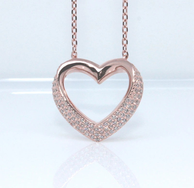 Strieborný náhrdelník so srdiečkom osadený zirkónmi. Náhrdelník má pozlácený povrch. Zapínanie je karabínové. Rozmer srdiečka so zirkónmi 17x18mm. Očká na retiazkové časti náhrdelníka majú priemer 1,2 mm. Dĺžku náhrdelníka je možné nastaviť v rozmedzí dĺžok 42-45cm.