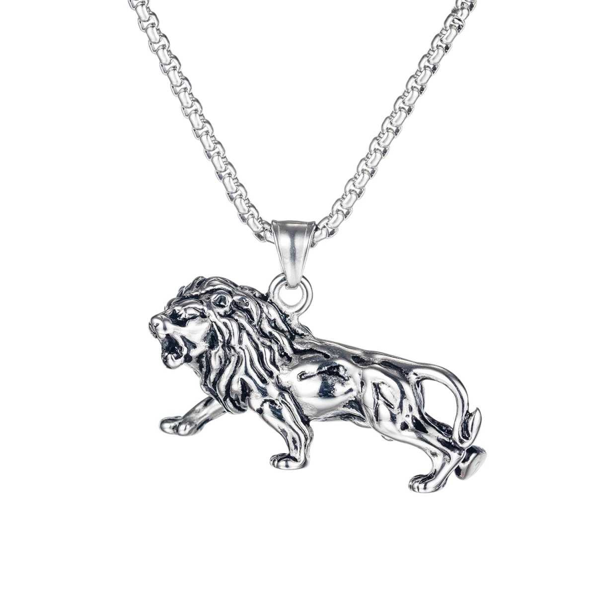 Oceľový náhrdelník s levom pre mužov a ženy. Ako každý šperk vyrobený z chirurgickej ocele je tiež tento náhrdelník odolný proti poškodeniu, nevyvoláva alergické reakcie, neoxiduje a je farebne stály.
