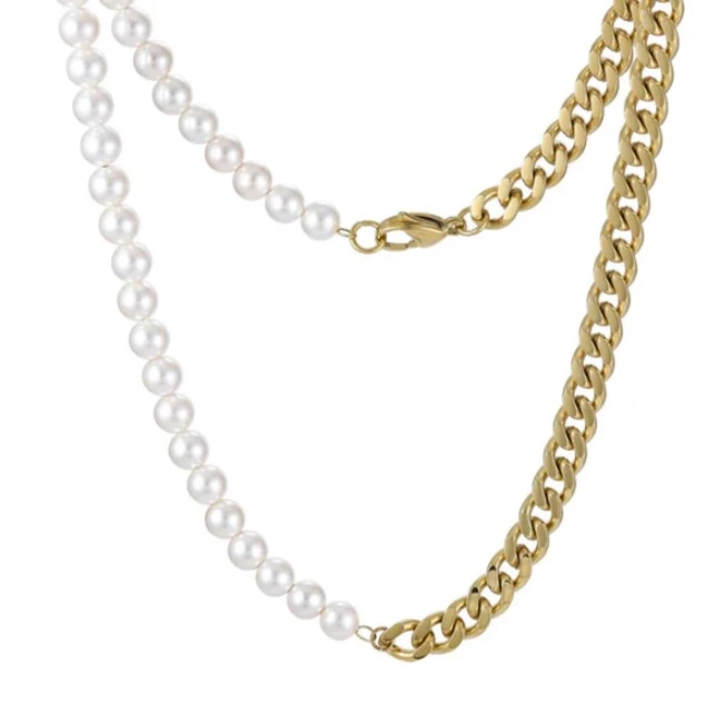 Elegantný náhrdelník spájajúci pozlátenú chirurgickú oceľ s nadčasovou krásou prírodných perál. Chirurgická oceľ dodáva náhrdelníku moderný a sofistikovaný vzhľad, prírodné perly dávajú náhrdelníku nádych luxusu a romantiky, ktorý obohatí váš každodenný outfit aj špeciálne príležitosti. Tento perlový náhrdelník môže byť aj perfektným darčekom pre Vašich blízkych. Urobte radosť sebe, alebo svojim blízkym ešte dnes a kúpte si náš perlový náhrdelník.
